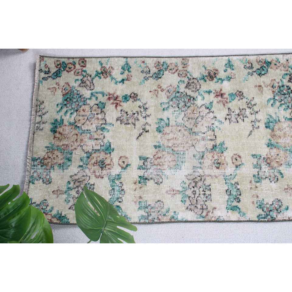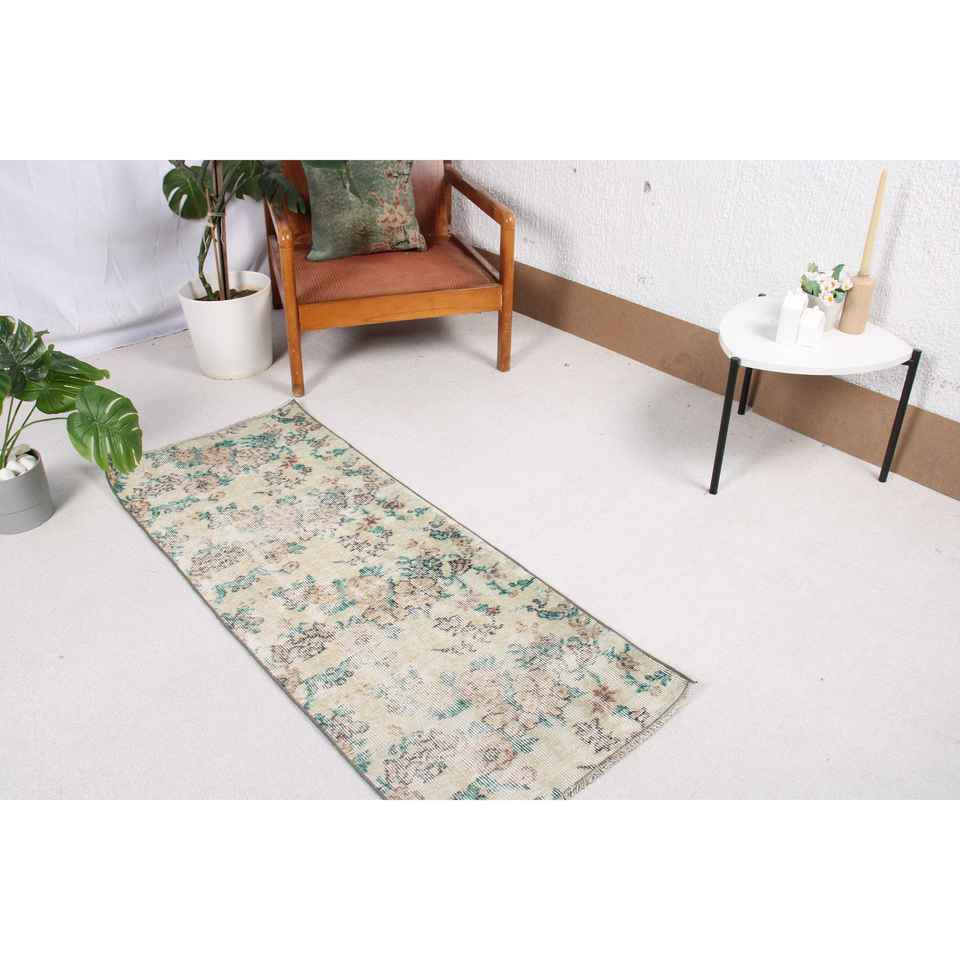 Alfombra Turca Vintage Pequeña de 1.9x4.8 pies, Alfombra Azul del Suroeste de Estados Unidos de Lana