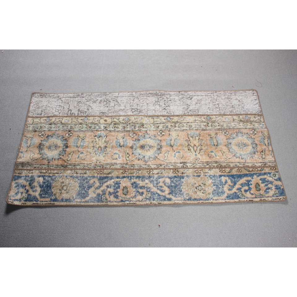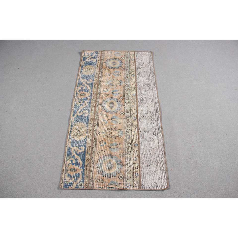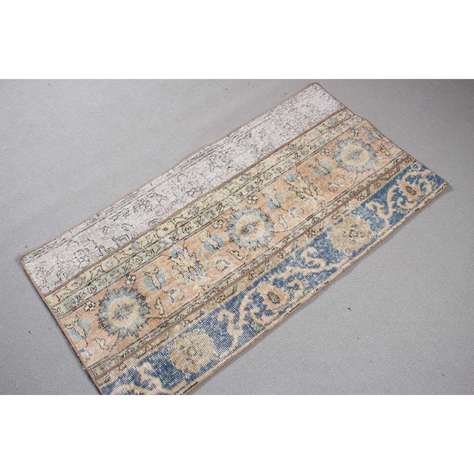 Alfombra Turca Vintage Pequeña de 2.1x4.1 pies, Azul, Estilo Suroeste, con Parches de Lana y Base de Látex, Decoración Ecológica para el Hogar