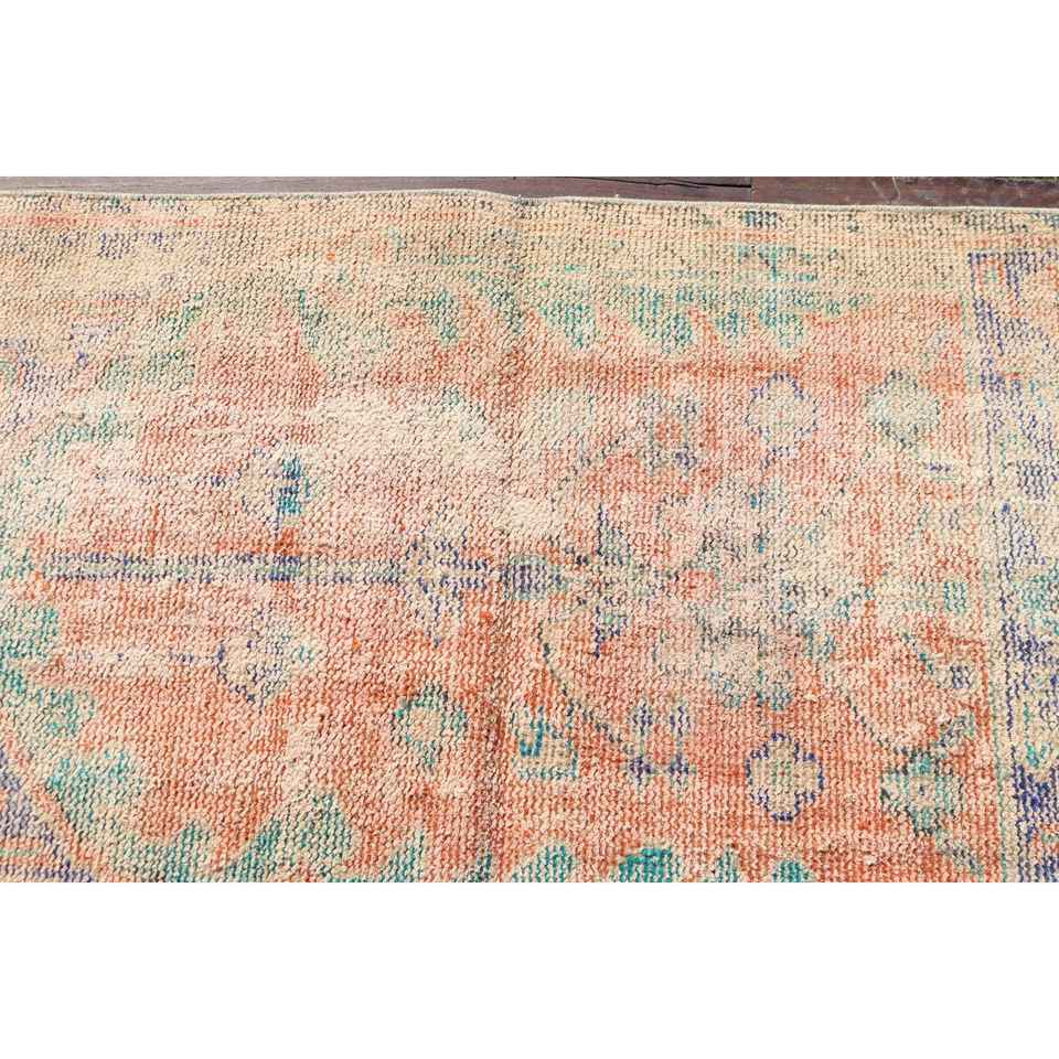 Alfombra Turca Vintage Pequeña de 2.4x3.9 pies, Alfombra de Lana con Diseño de Plantas y Árboles Azules