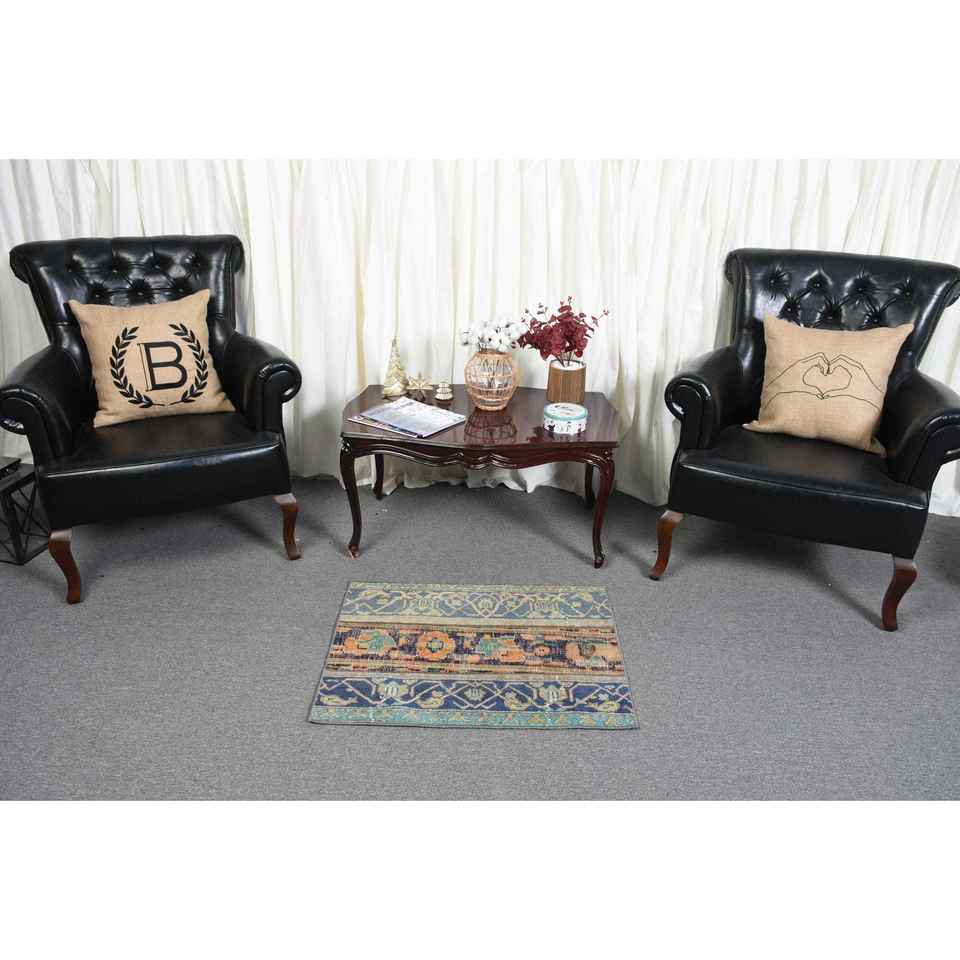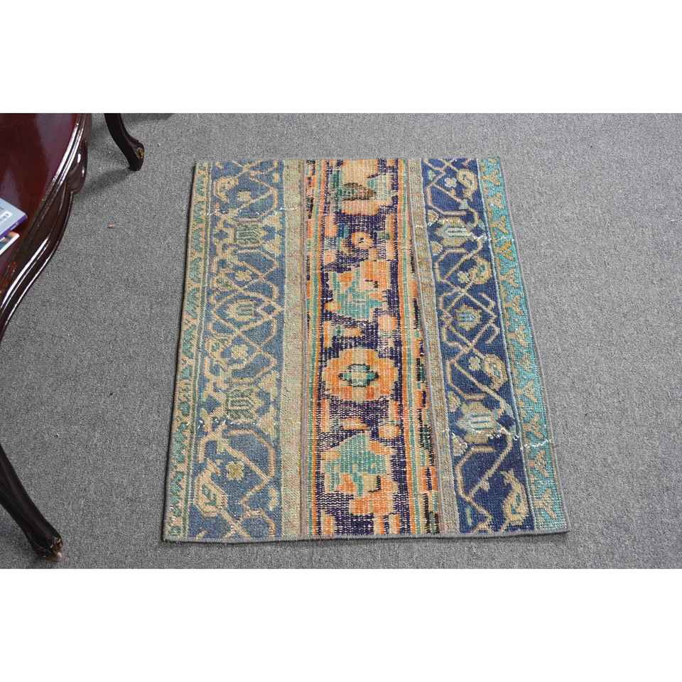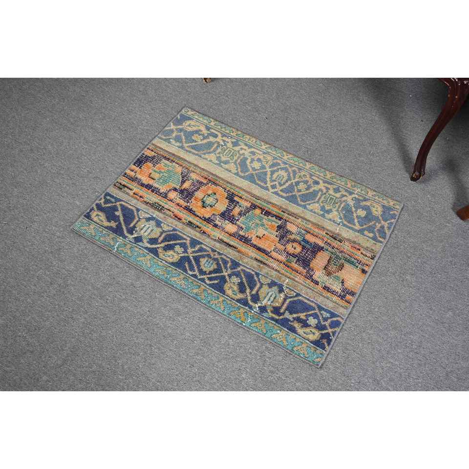 Alfombra Turca Vintage Pequeña de 2x2.7 pies, Alfombra de Lana con Estampado Animal Azul y Naranja