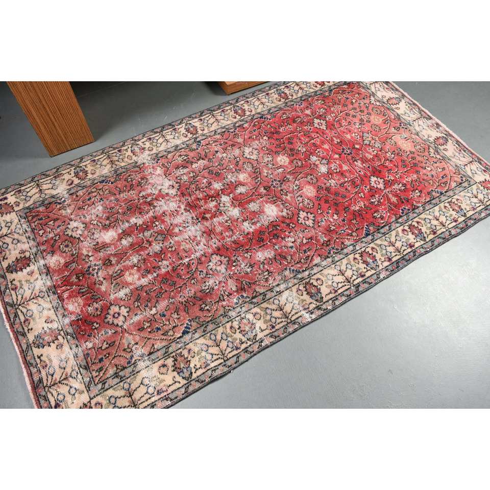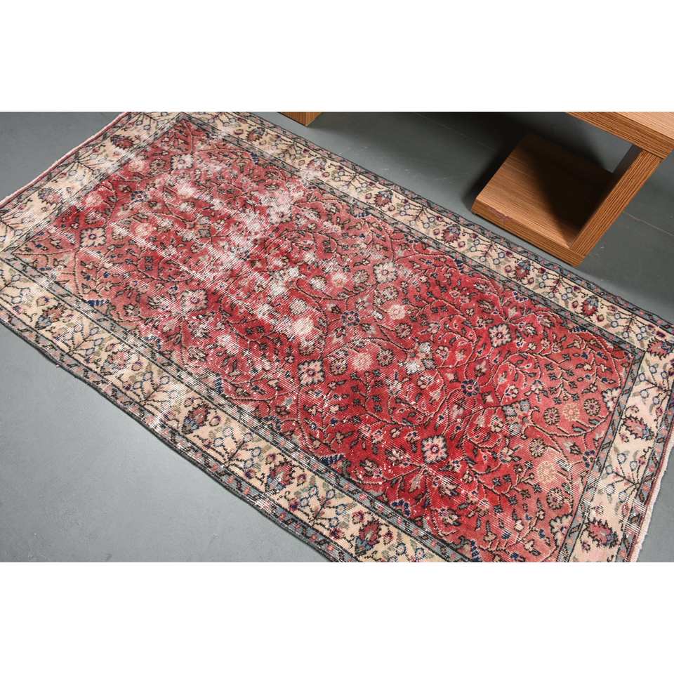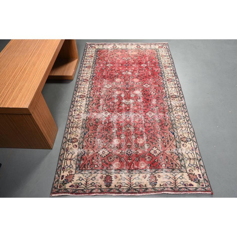 Alfombra de área de lana turca Vintage 3,7X6,7 pies rojo blanco estilo clásico diseño de retazos tejido plano decoraciones para sala de estar látex