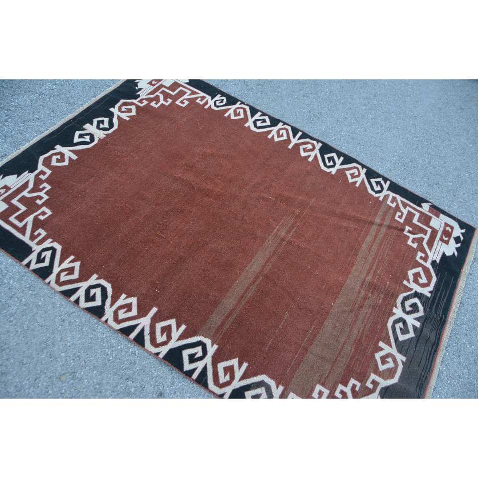 Alfombra de lana turca Vintage, alfombra de área de gran tamaño moderna marrón y negra, patrón de retazos rectangular de 44x63 pies, clásica para dormitorio de látex