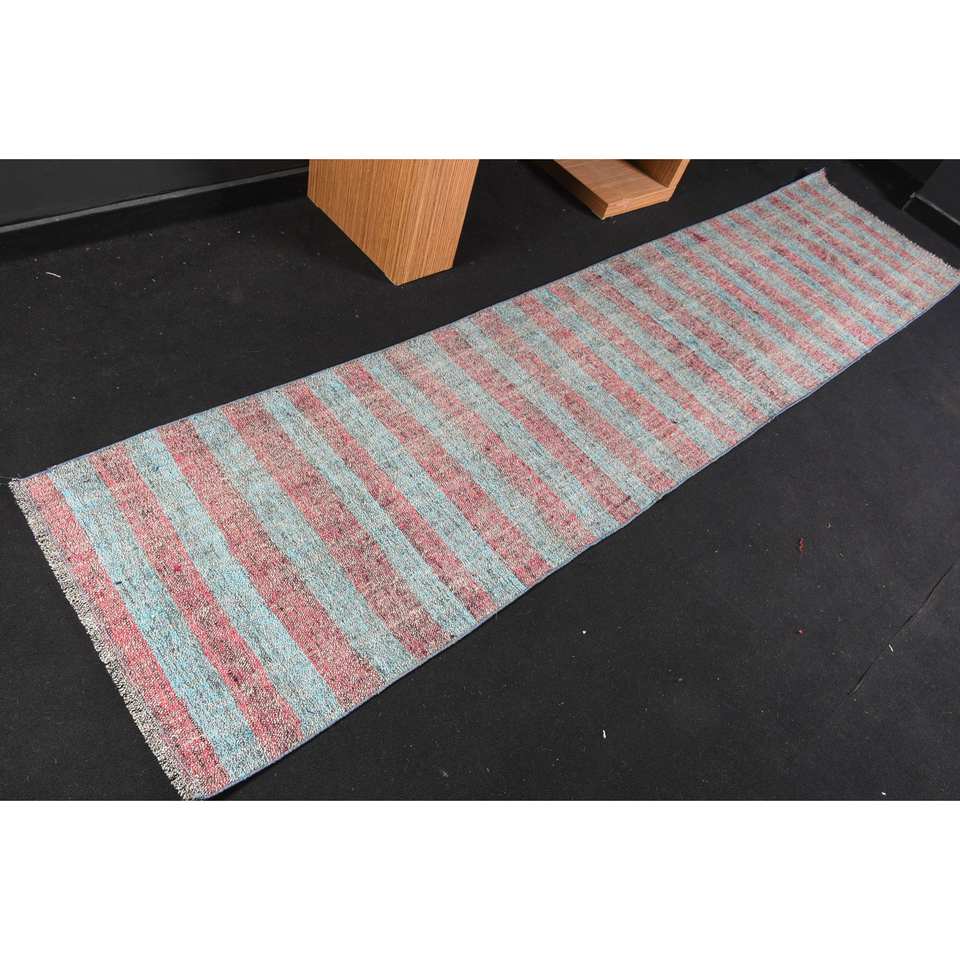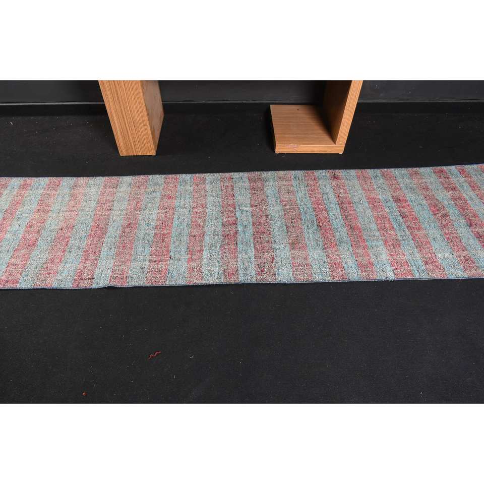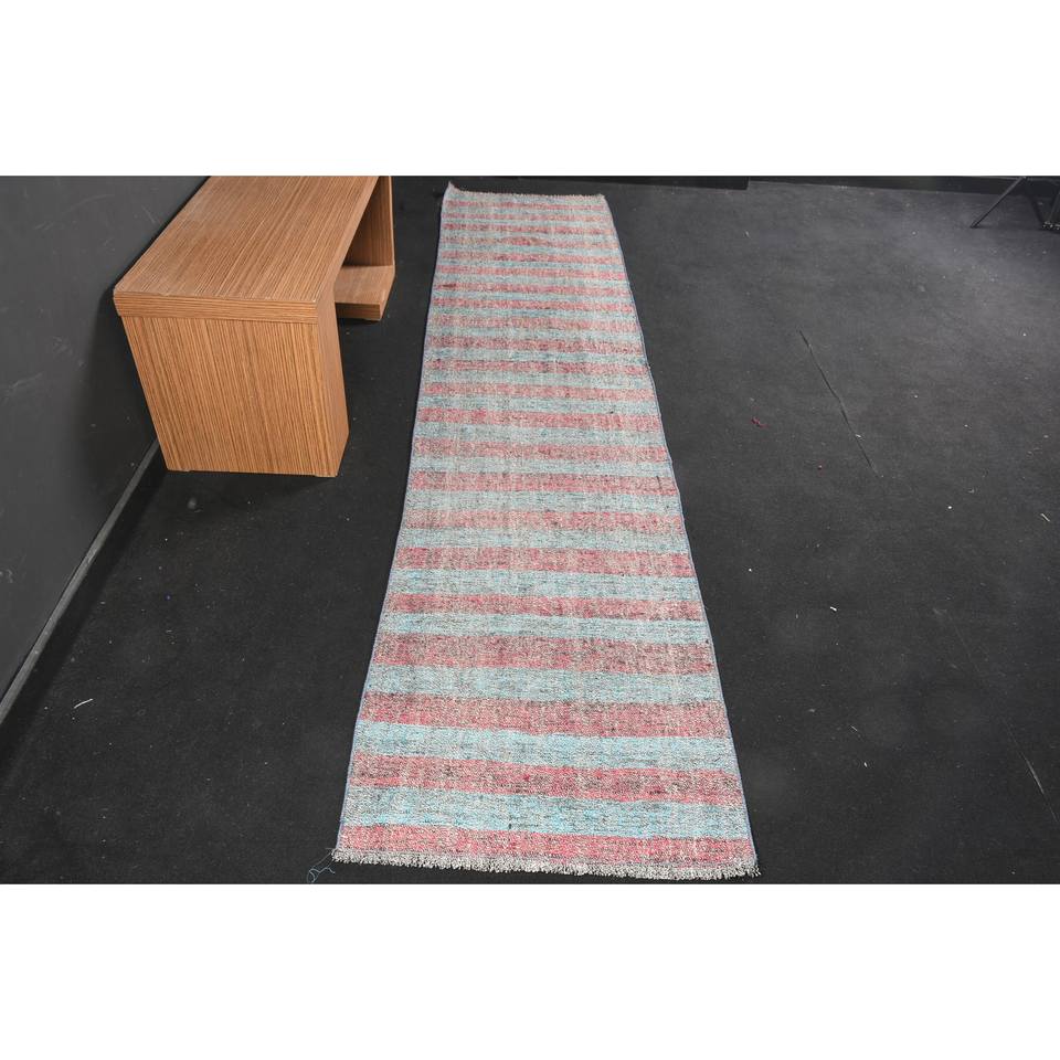 Alfombra de lana turca Vintage, diseño de retazos rojo y azul, 2,4x10,6 pies, tamaño moderno, clásica para pasillo grande, Alfombra de habitación de látex