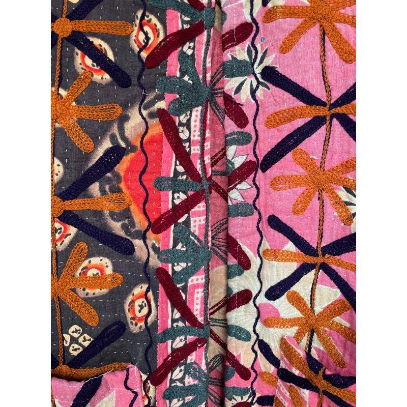 Abrigo Estilo Retro Vintage Unisex Algodón Indio Suzani Chaqueta Bordada a Mano Cinturón Cosido a Mano Acolchado Kantha Bordado