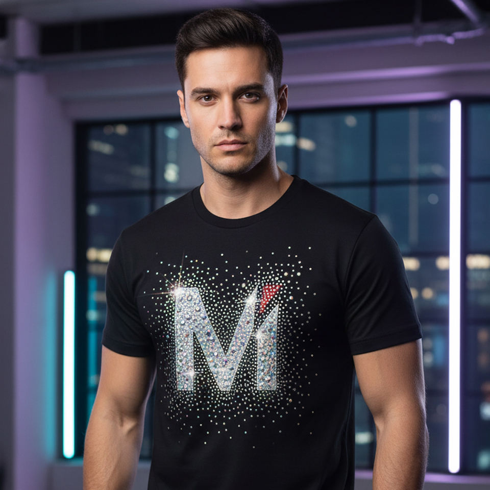 Camiseta Vintage con Pedrería y Lavado Ácido, Oversize, con Logo de Cristales Brillantes, para Hombre, Estilo Urbano, de Lujo, de Algodón Pesado, con Gráficos