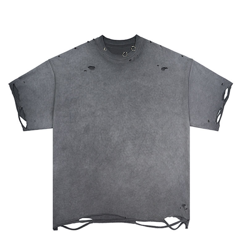Camiseta de algodón OEM estilo streetwear oversize de invierno, con hombros caídos, efecto desgastado vintage y lavado, de jersey largo.
