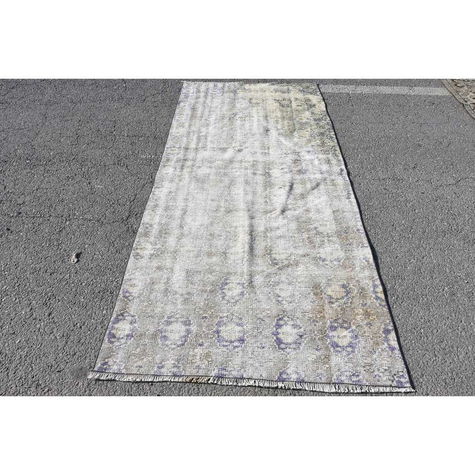 Alfombra turca blanca y azul Vintage, 3,8x8,2 pies, látex de lana, área grande, forma Rectangular, Tabriz abstracto para habitación de adolescentes, alfombra