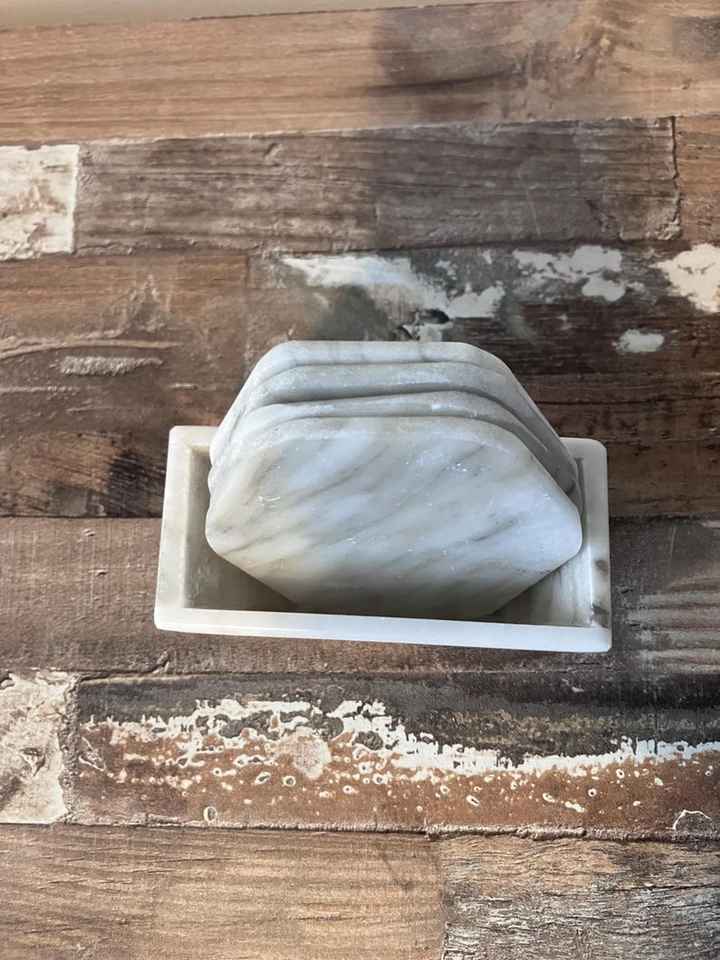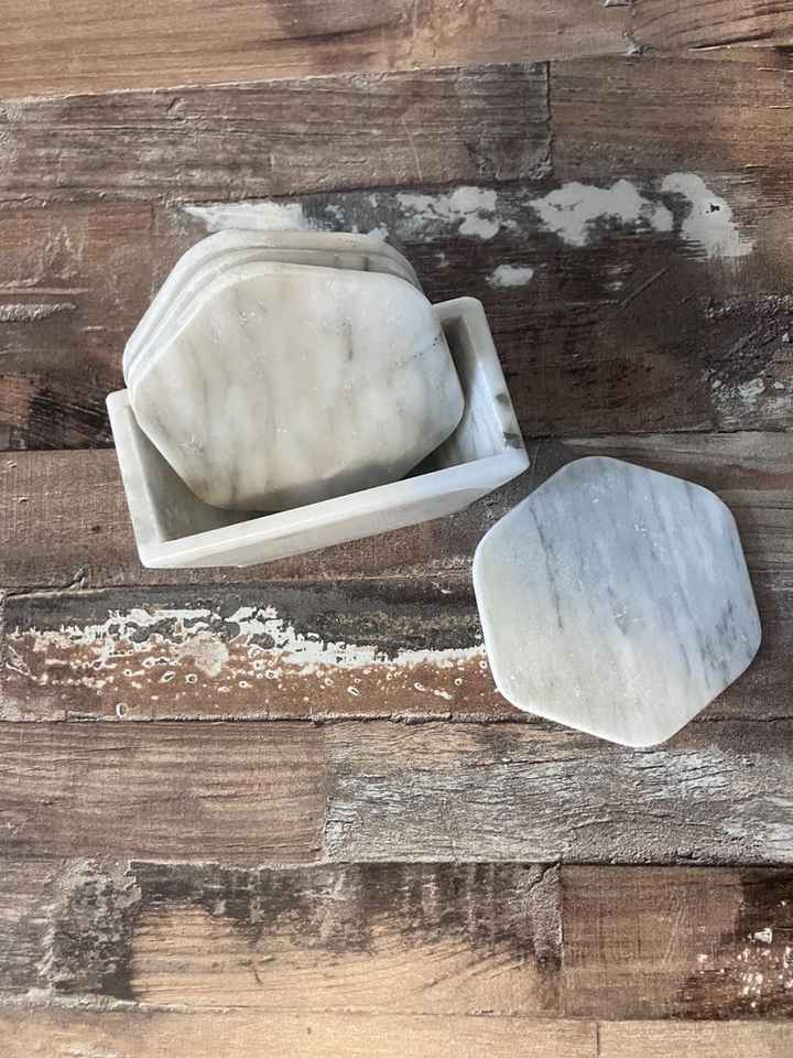 Juego de Posavasos de Mármol Blanco Vintage, Juego de Posavasos de Piedra Natural, Decoración Clásica para Mesa y Café