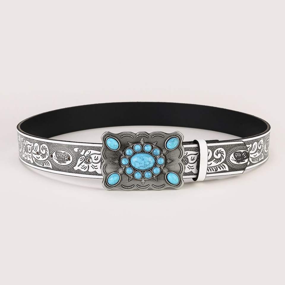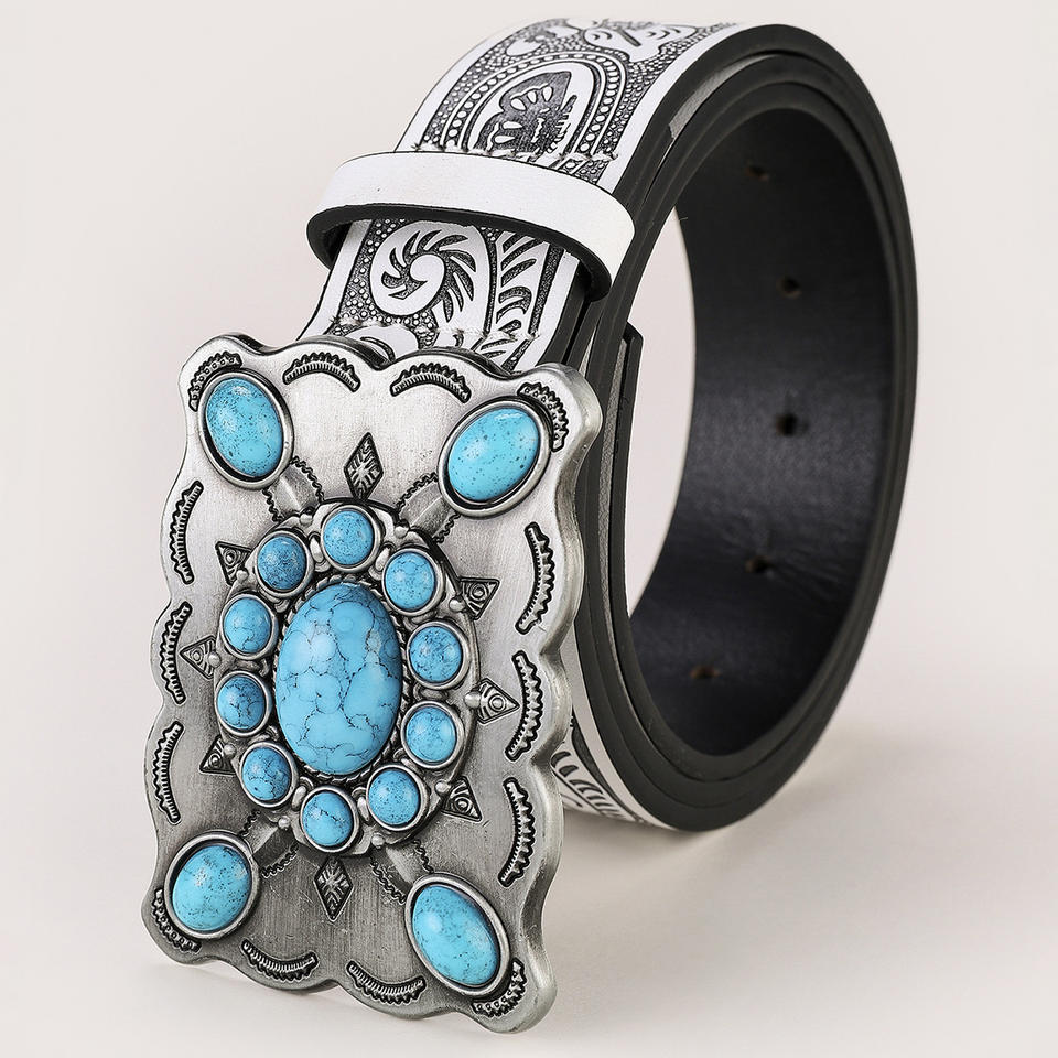 Cinturón ancho azul turquesa para mujer, estilo étnico, hebilla de aleación cuadrada, Simple diseño occidental, hecho en Pakistán, cuero genuino, PU