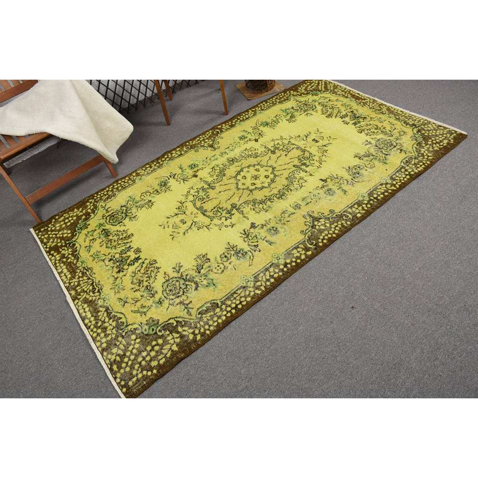 Alfombra de retazos de lana Vintage 3,9X7,1 pies Respaldo de látex marrón amarillo Sala de estar Dormitorio Piso Rectangular Pasillo Patrón