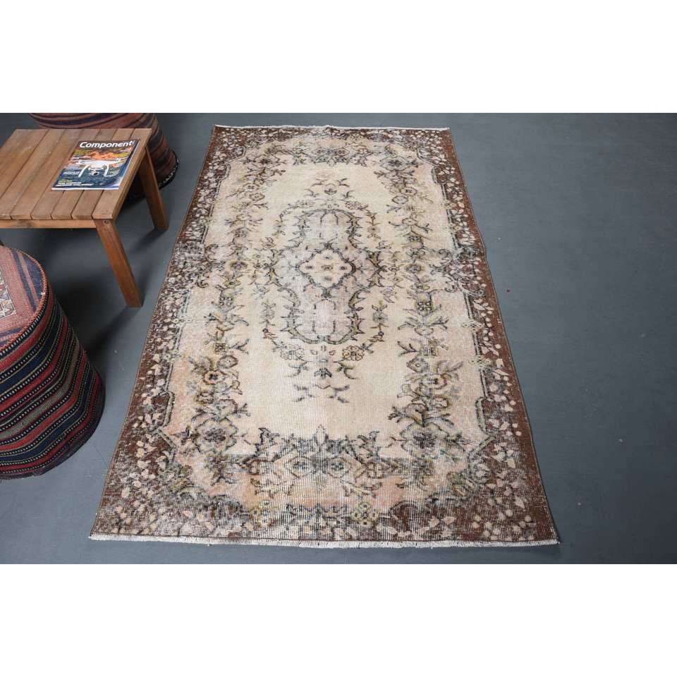 Alfombra de retazos de lana Vintage Beige Marrón Diseño rectangular clásico 3,8 X 6.3ft Alfombra de sala de estar Respaldo de látex para decoraciones