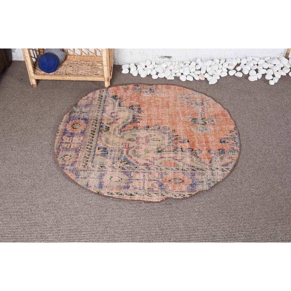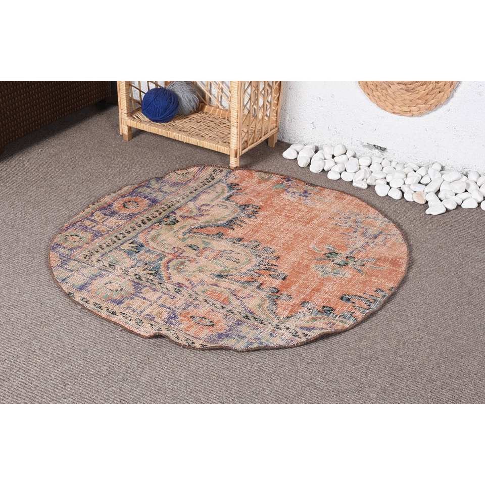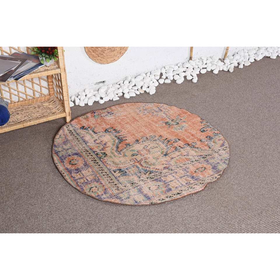 Alfombra de retales de lana Vintage, naranja, azul, hecha a mano, área grande, patrón rectangular, 3,3x3,3 pies, látex duradero, bambú, seda, poliéster