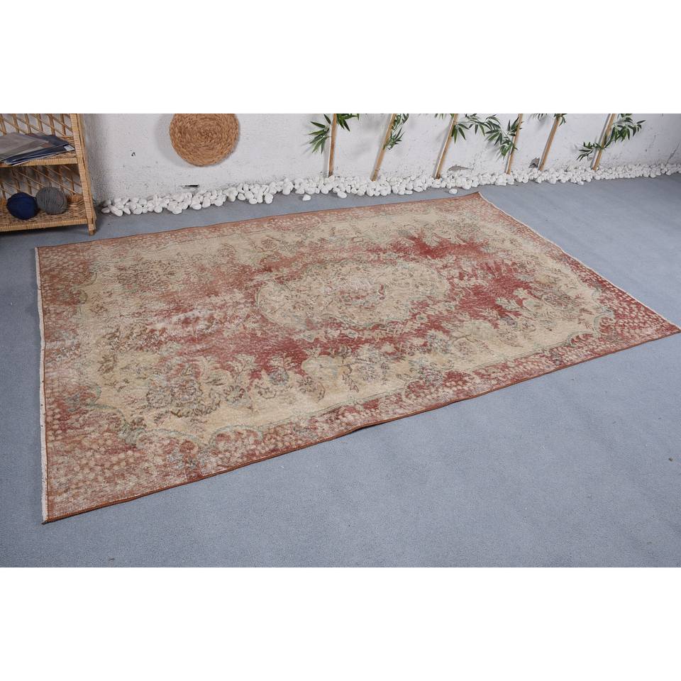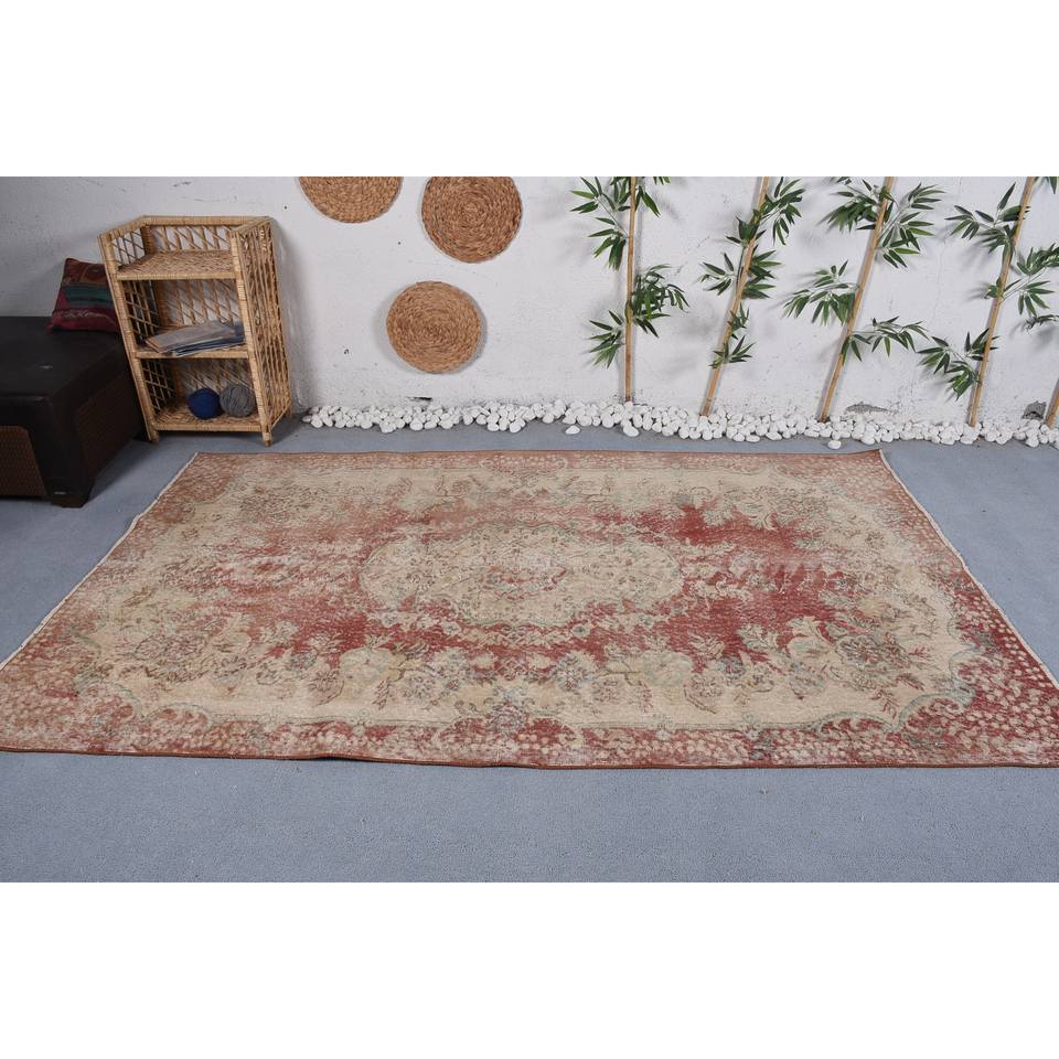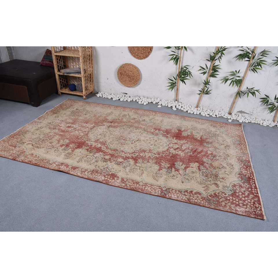 Alfombra de retazos de lana Vintage rojo y Beige estilo clásico 9x12 patrón abstracto rectangular para entrada o cabecera con respaldo de látex