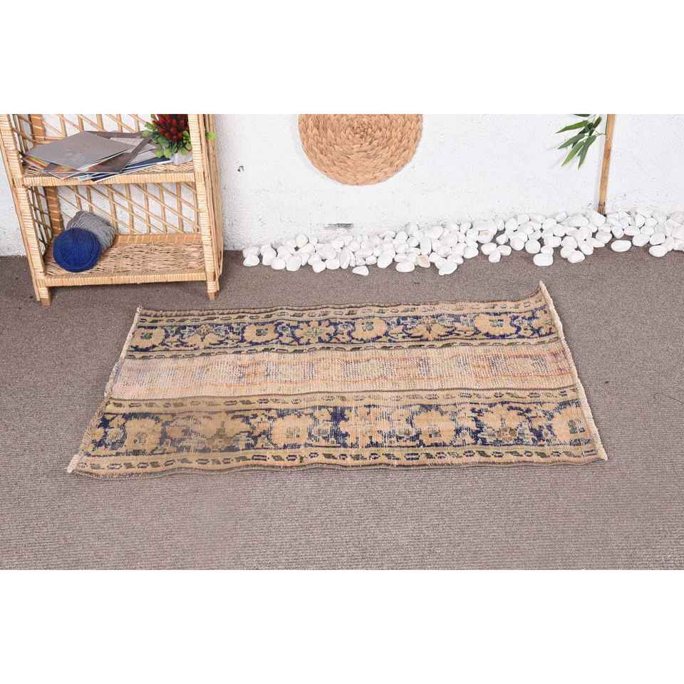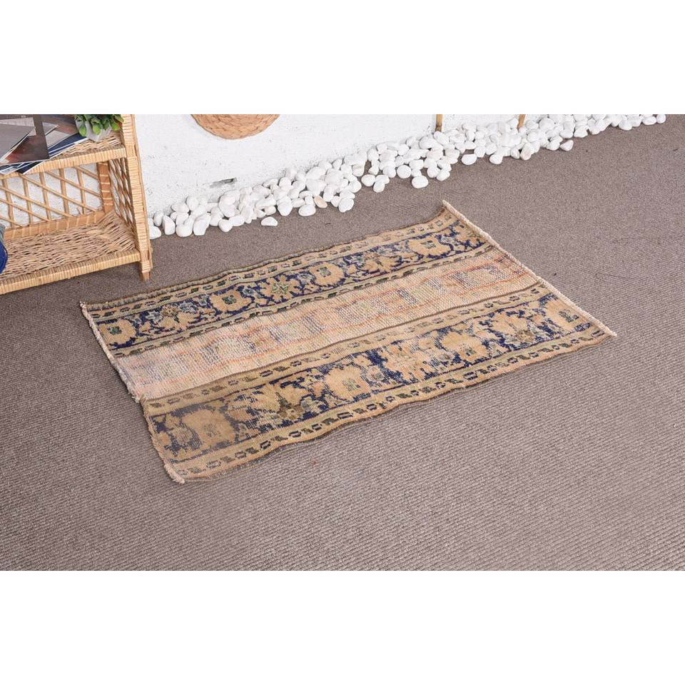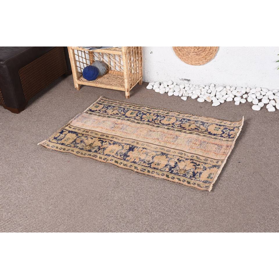Alfombra de lana Vintage de 2,5x3,7 pies, diseño rectangular de retazos beige y negro, hecha a mano con respaldo de látex para dormitorio o sala de estar