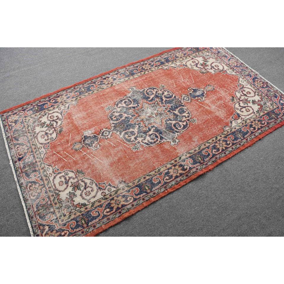 Alfombra de lana Vintage, retales rojo y azul de 39x7 pies, área grande, respaldo de látex, patrón abstracto para entrada, dormitorio, pasillo rectangular