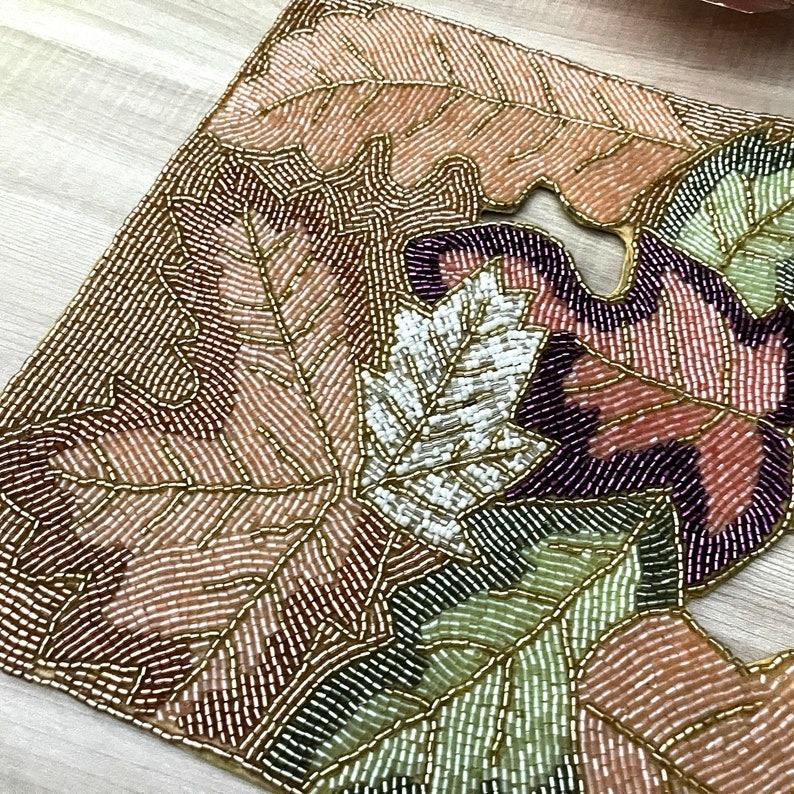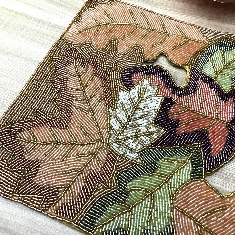 Mantel Individual de Lujo Vintage con Cuentas y Bordado a Mano, Decoración Ecológica para el Hogar para Cenas Festivas