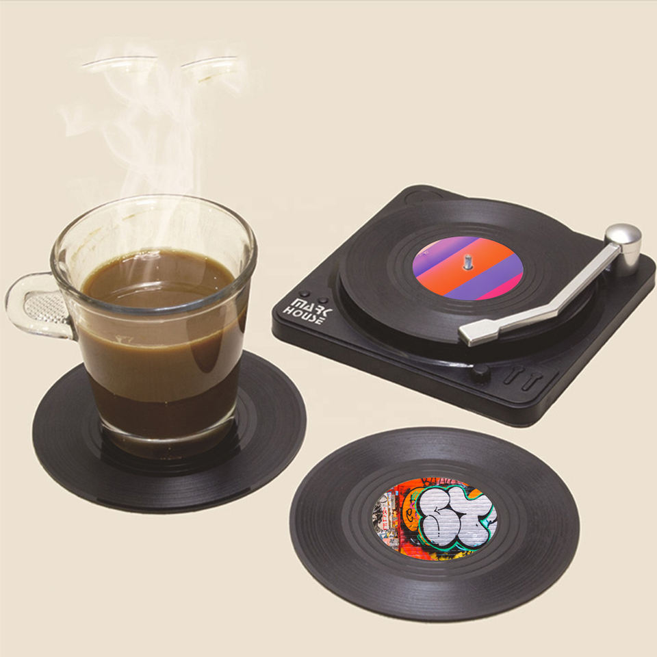 Posavasos de grabación de vinilo para bebidas, Decoración Retro colorida para el hogar/oficina/Bar, regalo divertido de calentamiento de casa para amantes de la música