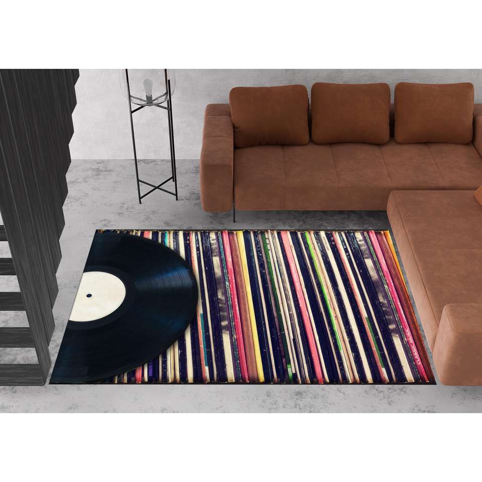 Alfombra de Vinilo con Diseño de Discos: Adorno Colorido para Sala de Música Retro, Alfombra de Chenilla
