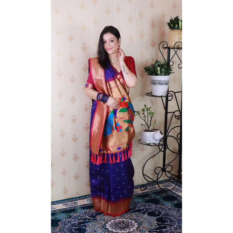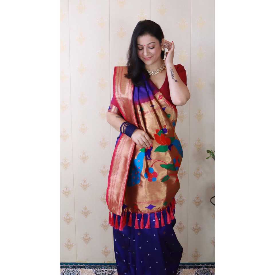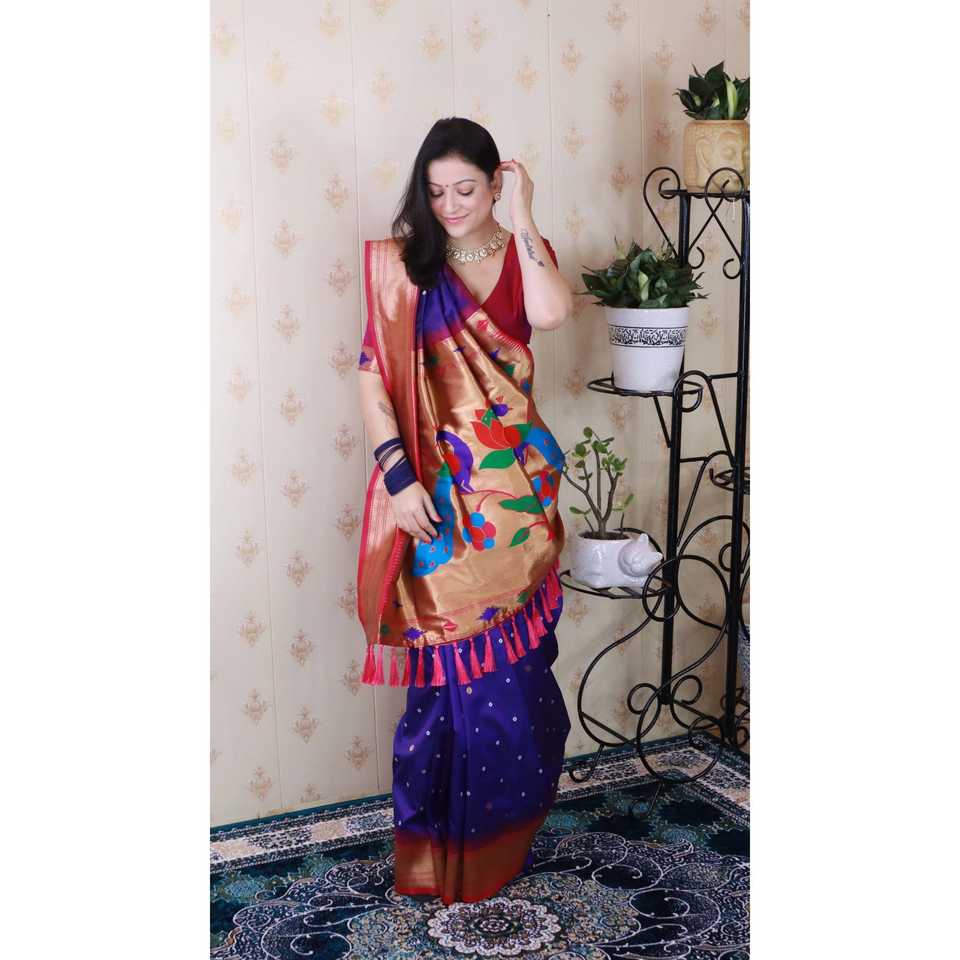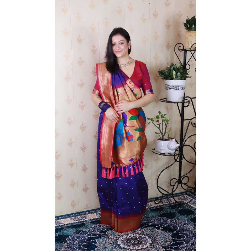 Sari de Seda Paithani Bandhani Violeta de Elite Weaves, Tejido con Hilo Zari, Elegante Vestido de Novia, 650g