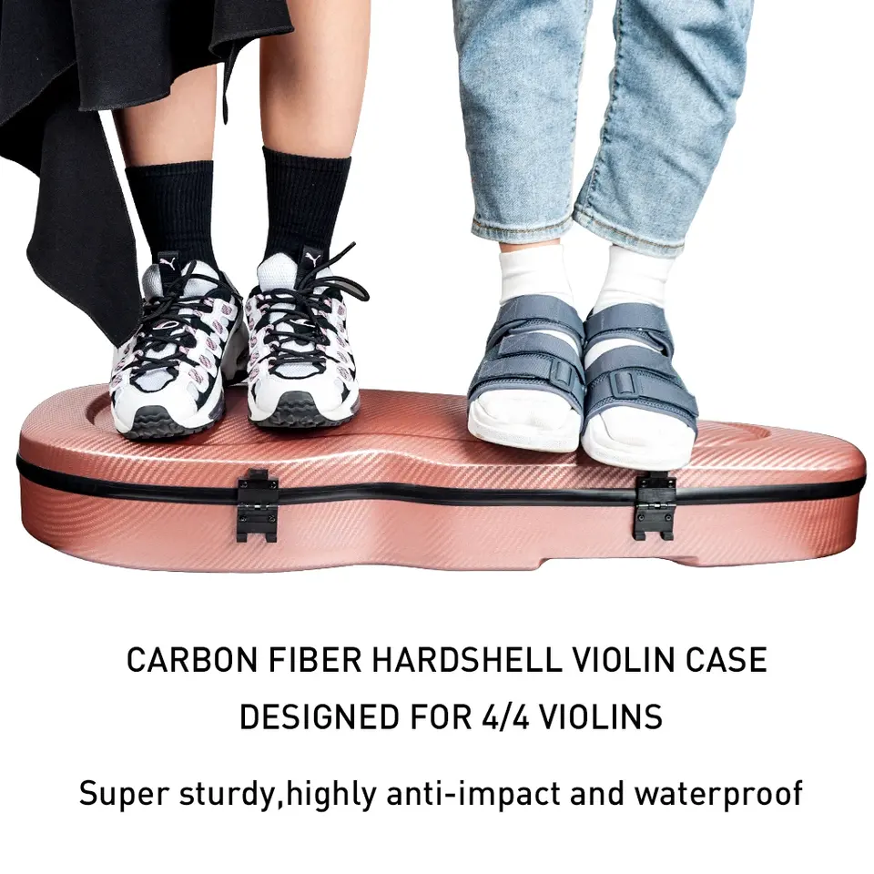 Estuche para violín 4/4 fibra de vidrio de fibra de carbono mango fuerte y acolchado grueso con forro de felpa profunda para violín eléctrico acústico