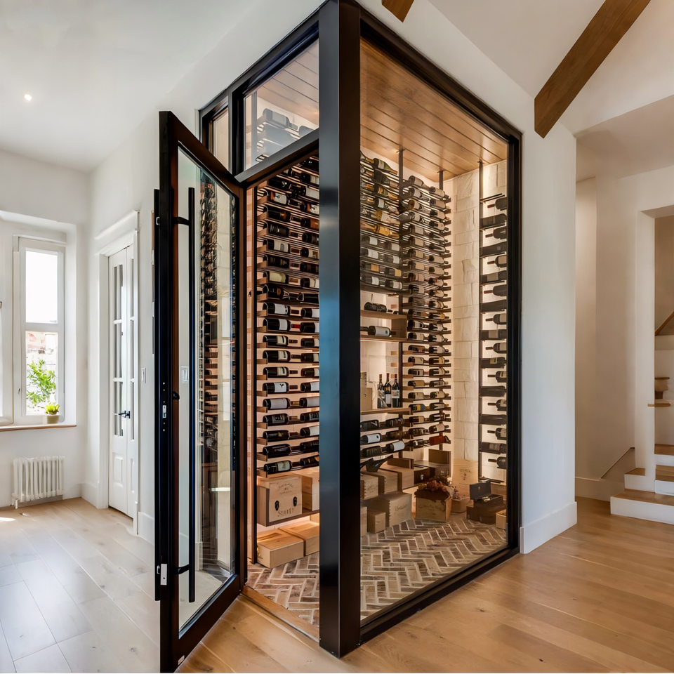 Vinoteca con refrigerador y almacenamiento de vinos