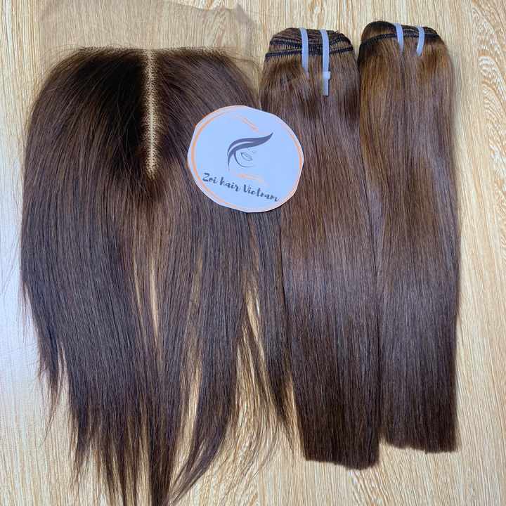 Extensiones de Cabello virgen de alta calidad, mechones de pelo lacio de hueso de color, trama genius con cierre de encaje 4x4, cabello remy vietnamita