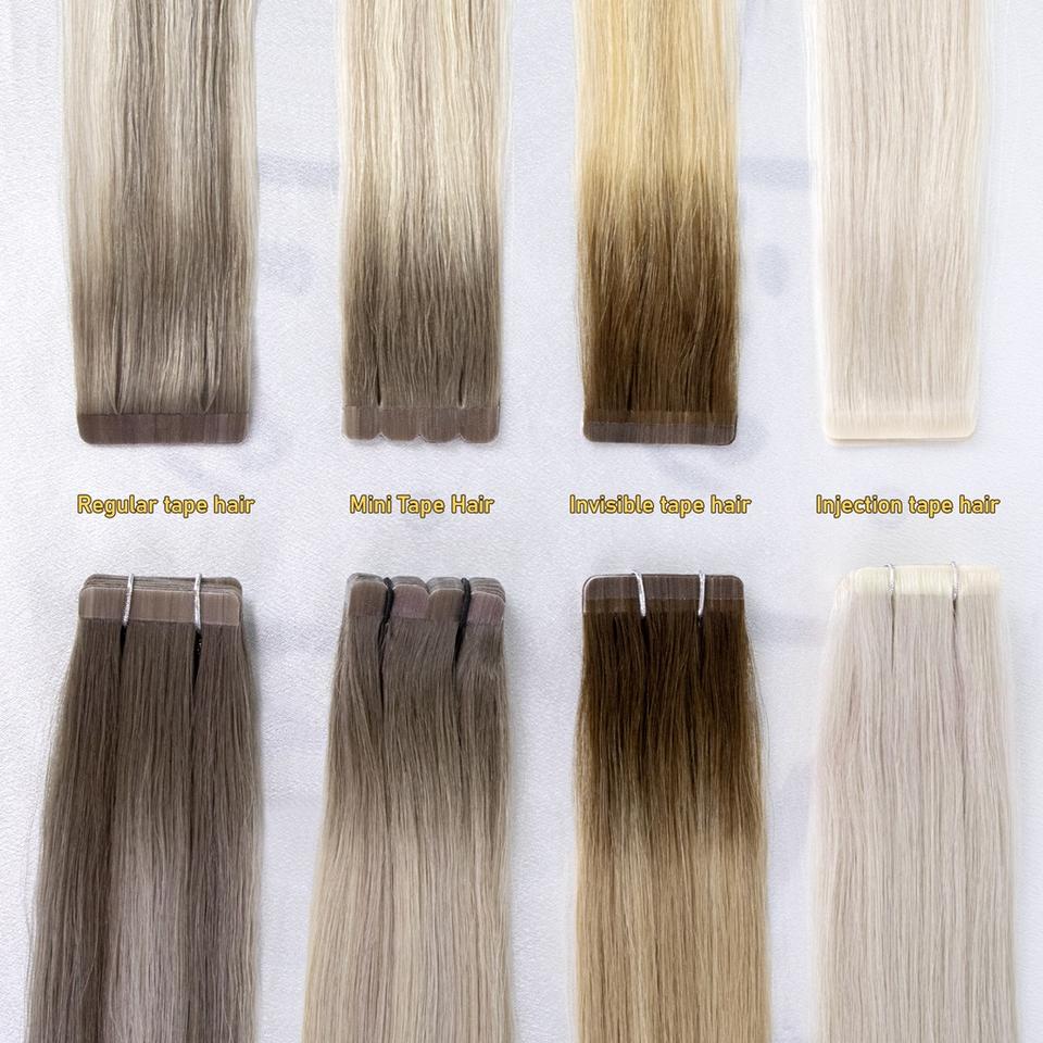 Extensiones de Cabello Remy Ruso Virgen Natural, Doble Trama, con Cinta Adhesiva Invisible, 100% Cabello Humano, Alta Calidad, Color Claro