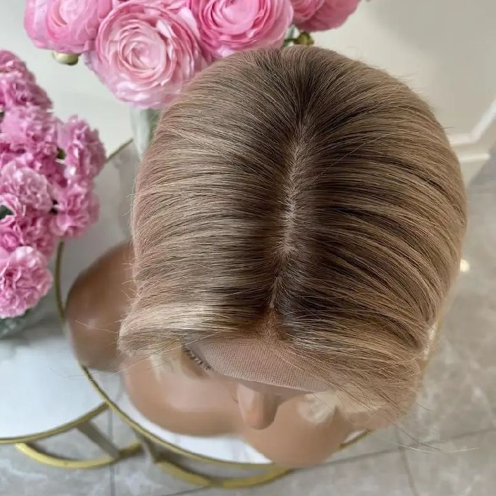 Peluca de Cabello Humano Remy Virgen con Cutícula Alineada - Peluca Frontal de Encaje sin Pegamento con Reflejos Rubios Ceniza para Mujer al por Mayor