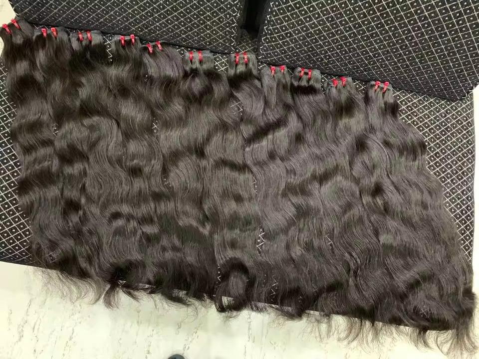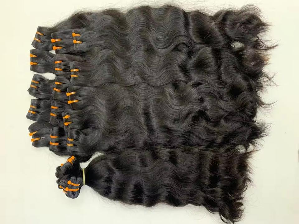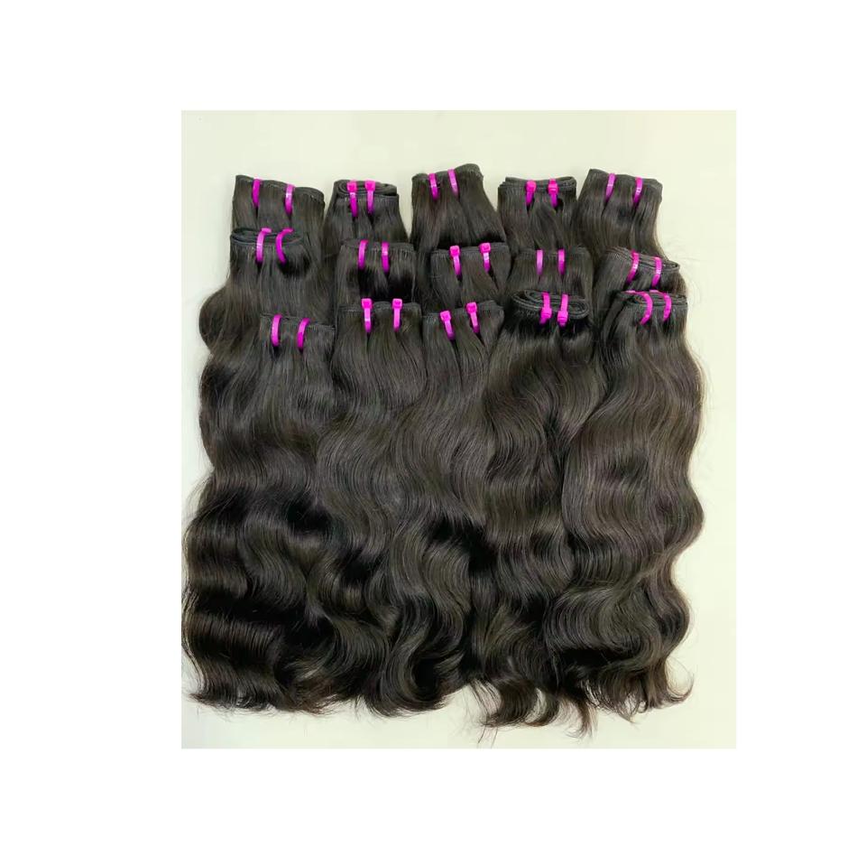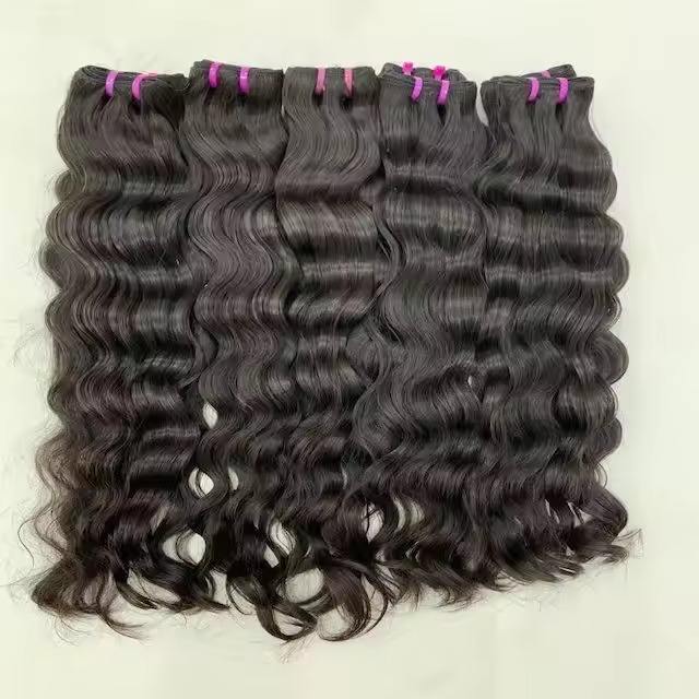 Extensiones de cabello humano ondulado Remy virgen Extensiones de cabello indio crudo sin procesar Paquetes de cabello ondulado de la India a precios de fábrica