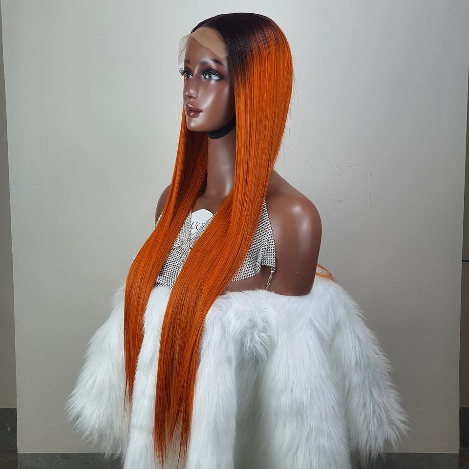 Virgen para naranja cierre transparente sin pegamento encaje doble dibujado peluca larga con pelo vietnamita crudo para mujeres