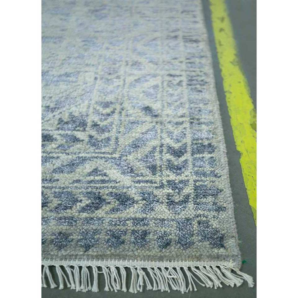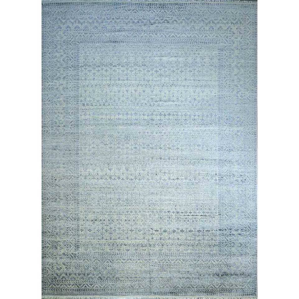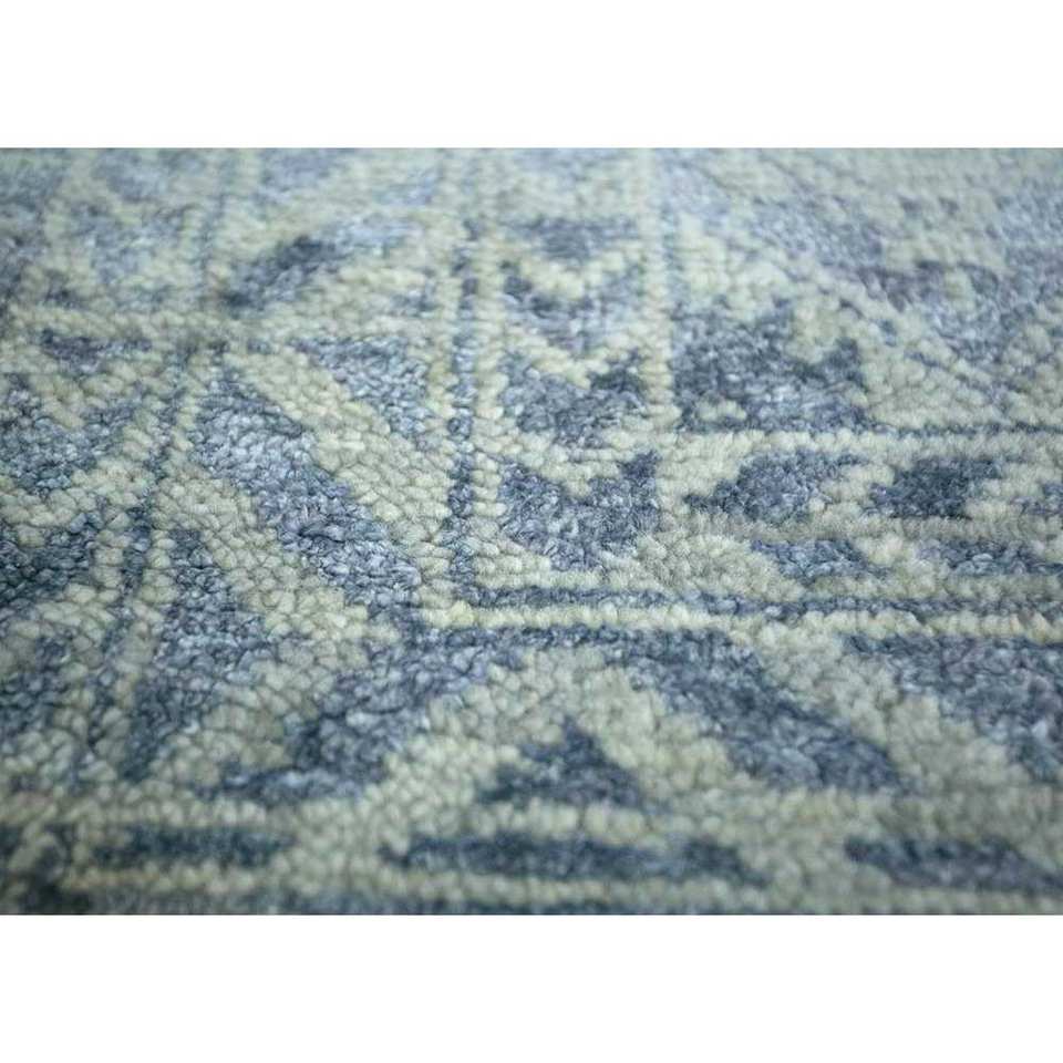 Alfombra de Lana Anudada a Mano Azul Viscaya con Patrón Geométrico 9x12 Rectangular para Sala de Estar o Dormitorio para Adolescentes - Modelo SKWL-200