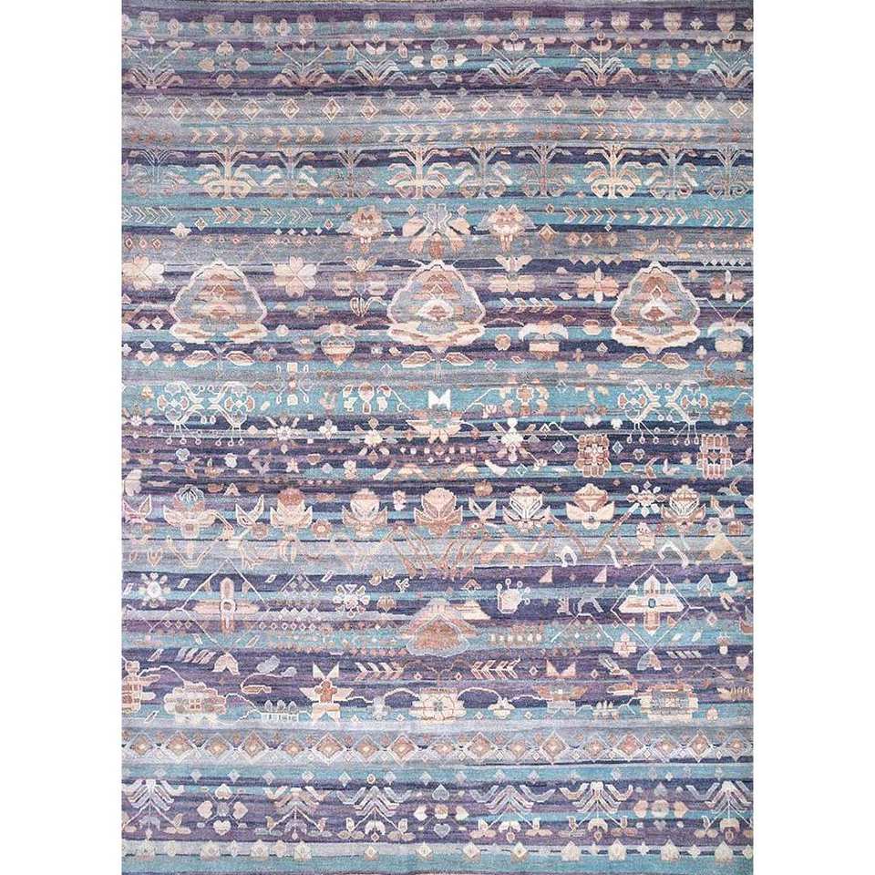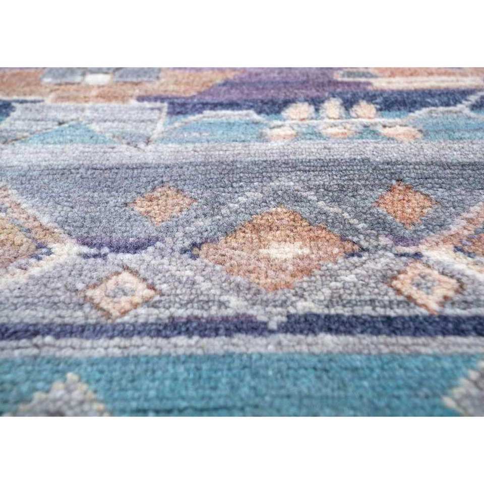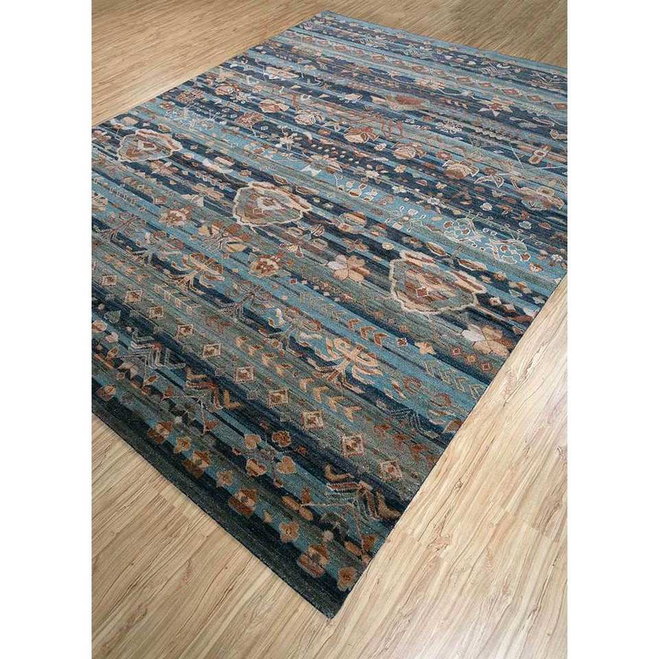 Alfombra de Lana Anudada a Mano Azul Viscaya AKWL-1062, Patrón Geométrico Rectangular, Alfombra para Pasillo, Sala de Estar, 9x12, para Decoración del Hogar