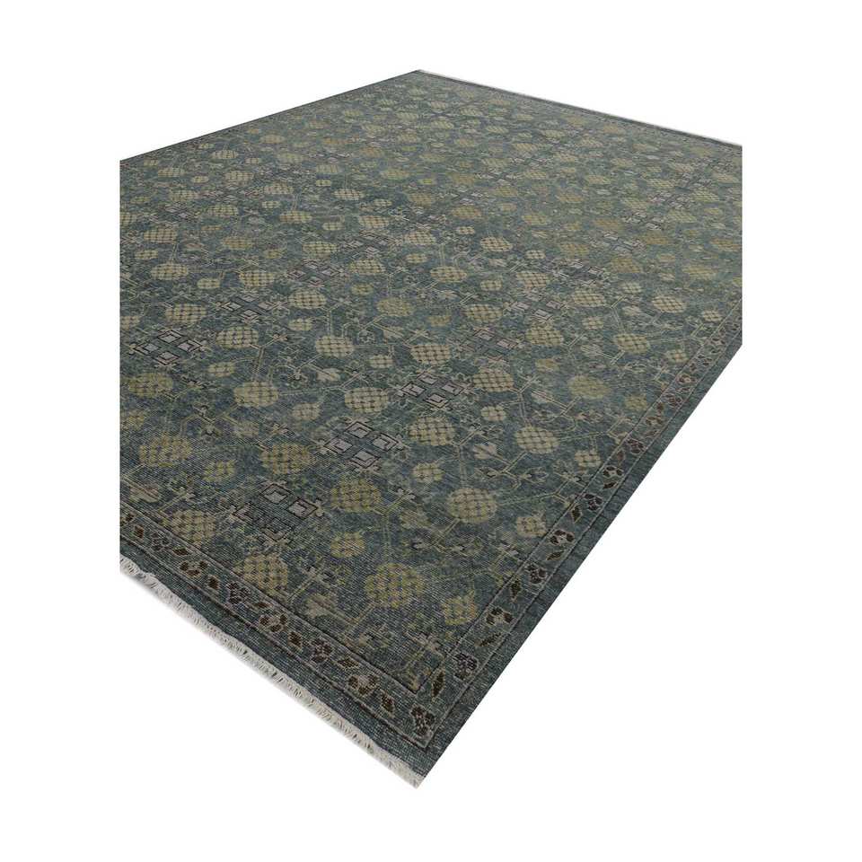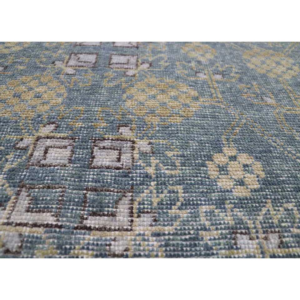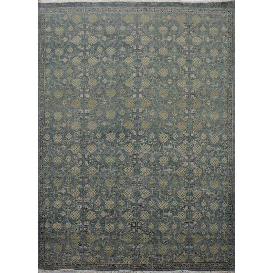 Alfombra de Lana Anudada a Mano Azul Viscaya 9x12 Rectangular con Patrón de Medallón, Altura 10mm, para Hogar, Sala de Estar, Dormitorio para Adolescentes - GS-7227