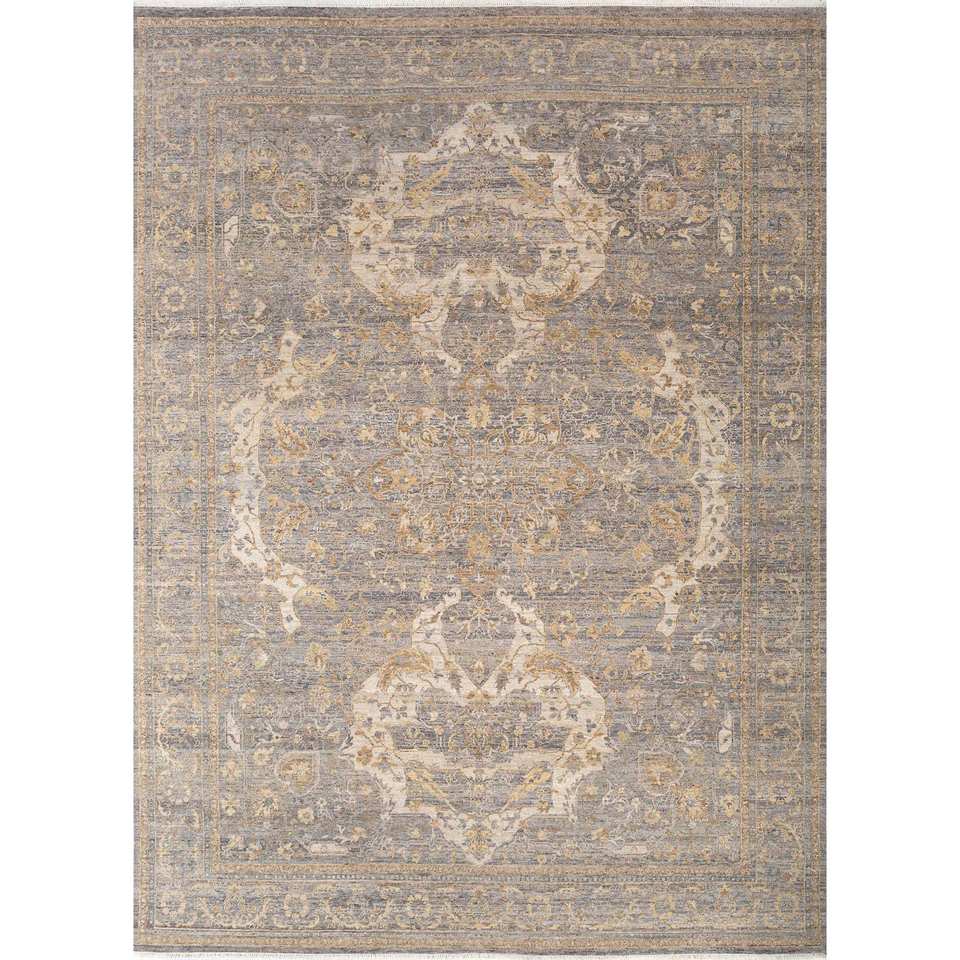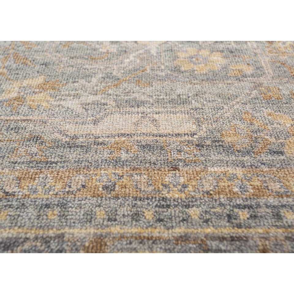 Alfombras de Lana Anudadas a Mano en Azul Viscaya con Diseño de Medallón y Patrón Abstracto para Entrada, Sala de Estar y Pasillo - Número de Modelo SKWL-499