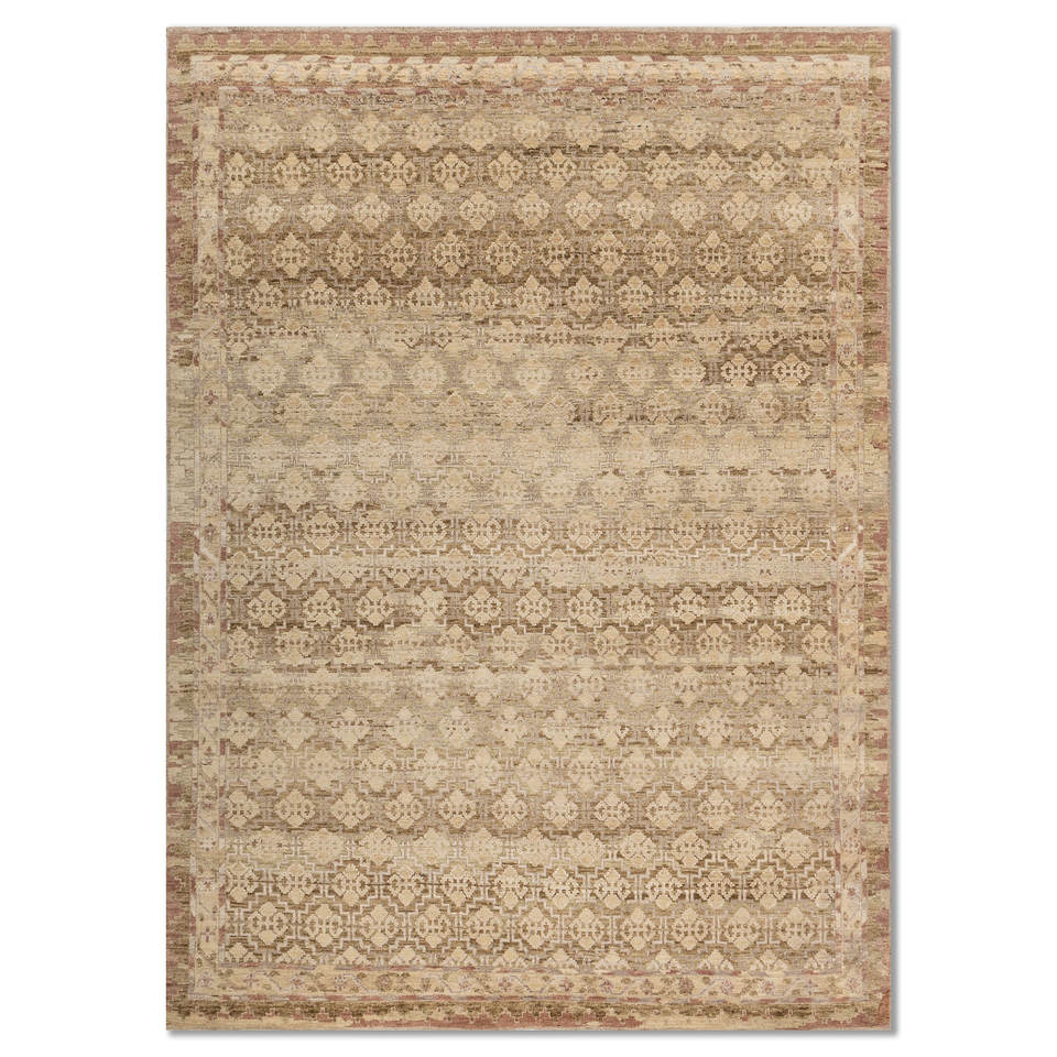 Alfombras de Lana Anudadas a Mano Viscaya Gold, Diseño Geométrico Clásico Rectangular para Sala de Estar y Dormitorio-ENM-8002(Cs-01)(Fr)