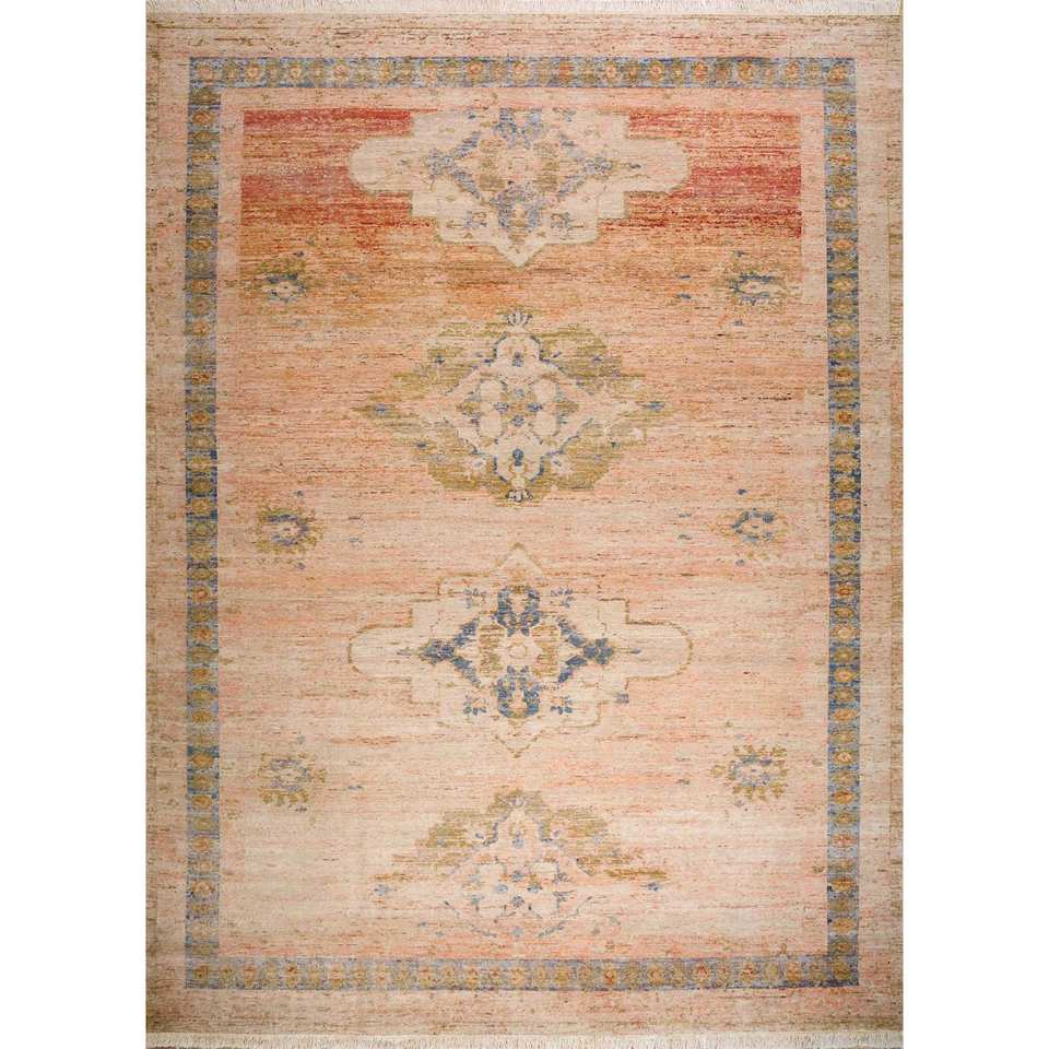 Alfombras de Lana Anudadas a Mano Viscaya, Diseño de Medallón Rojo y Naranja, para el Hogar, Pasillo o Sala de Estar, para Adolescentes, Lana EA-7093(CM-01)