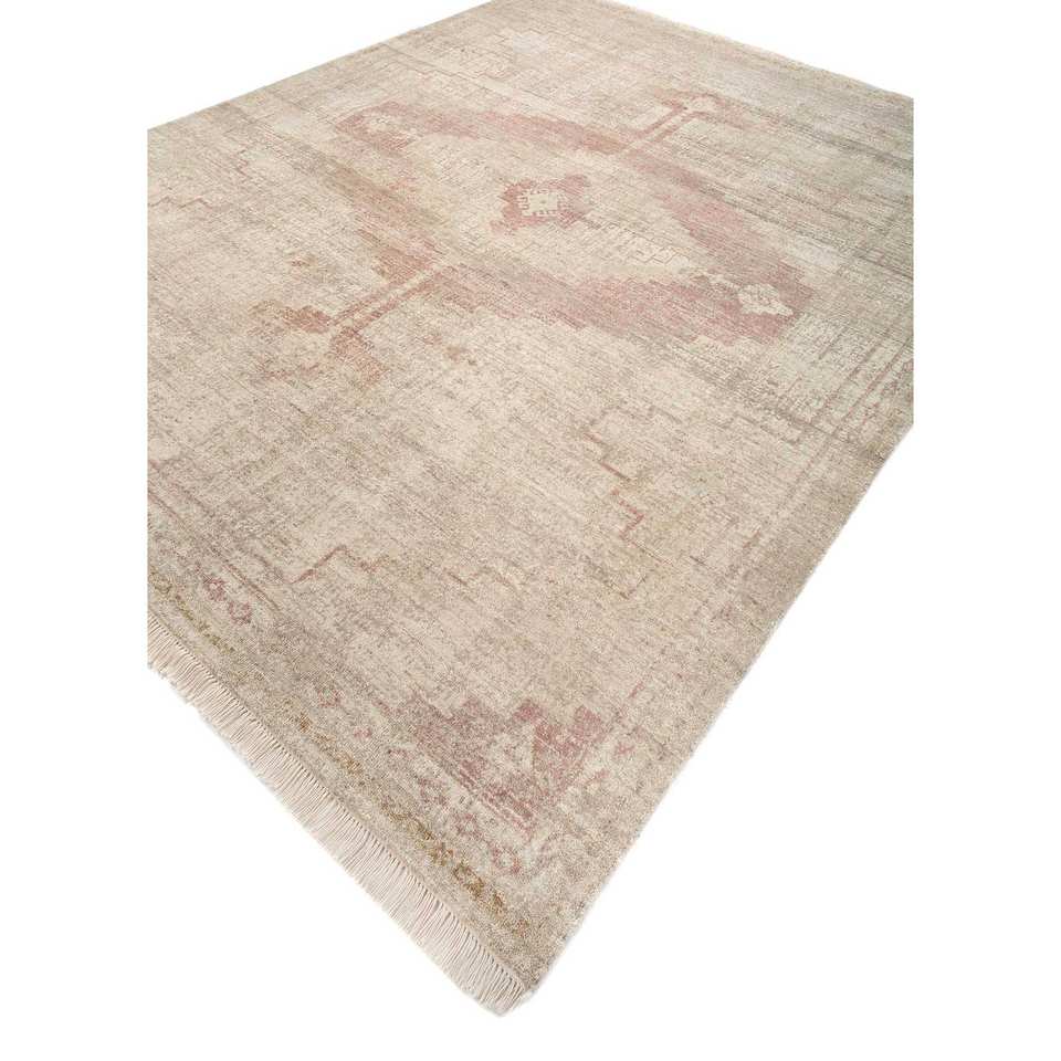 Alfombras de Lana Viscaya Color Marfil, Tejidas a Mano, AKWL-1743, para Entrada, Sala de Estar, Pasillo, Rectangulares, con Diseño de Medallón Abstracto