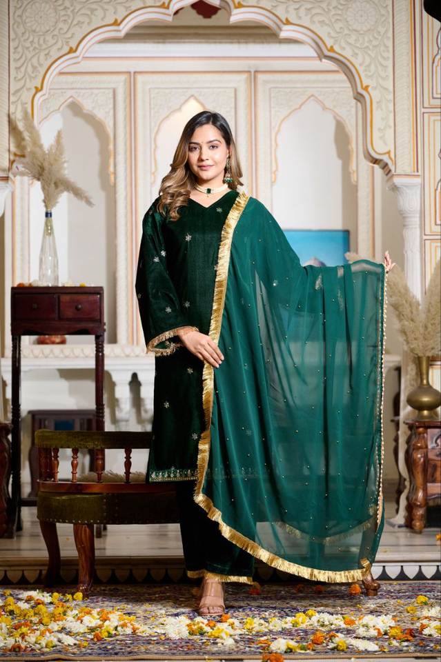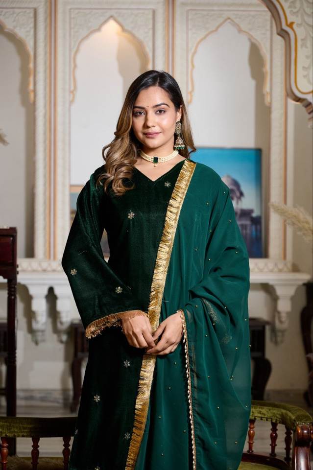 Salwar Kameez de Fiesta para Mujer, con Bordado de Hilo de Jari sobre Terciopelo Viscosa, Encaje Butti, Media Manga, Estilo Indio Pakistaní, Tejido Pesado Imitación