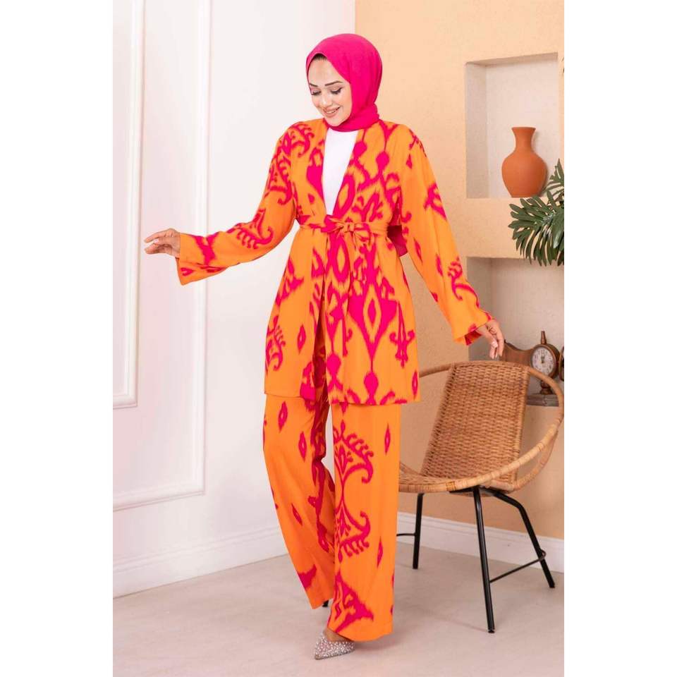 Hijab Estampado Viscosa Conjunto 2 Piezas Naranja