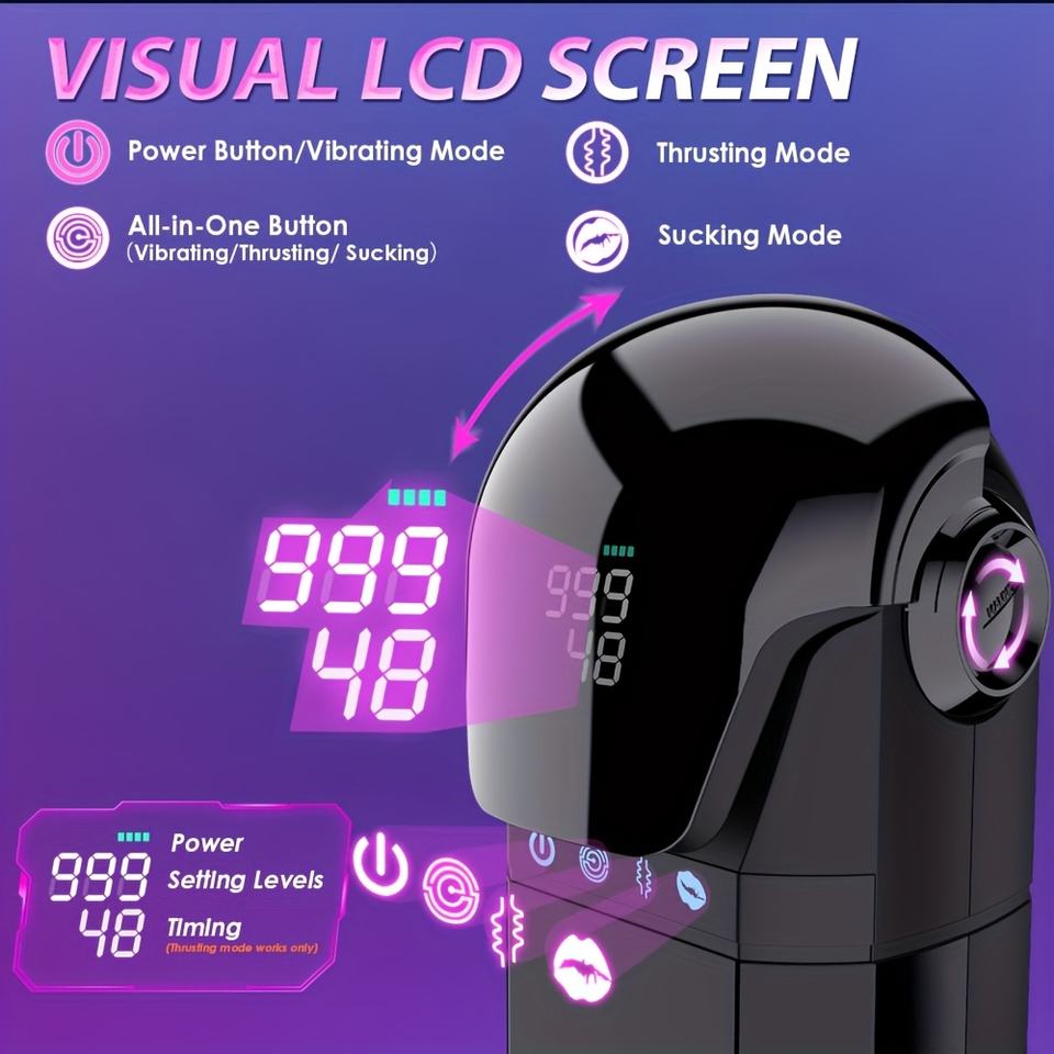 Máquina Automática de Masturbación Masculina con Pantalla Visual y Control por Aplicación, con Funciones de Succión, Empuje y Vibración, Juguetes Sexuales para Hombres