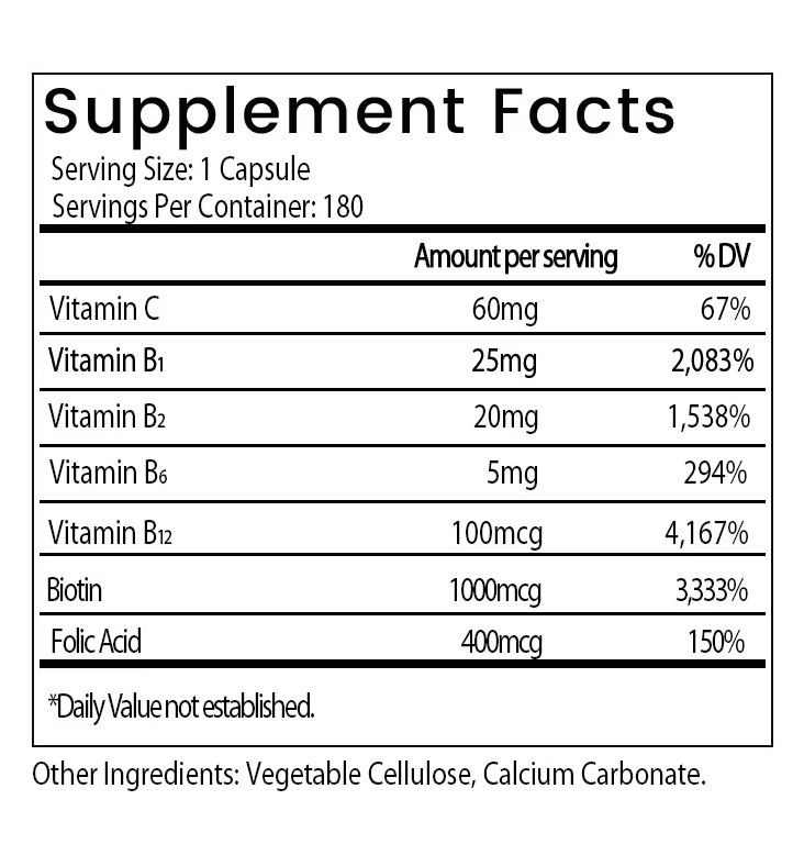 Ingrediente principal:Vitaminas B1, B2, B6, B12, Vitamina C y Ácido Fólico