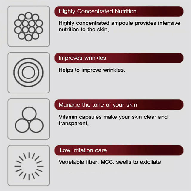 Extracto de raíz de agua purificada de Sophora, Extracto de ginseng rojo, Extracto de ginseng salvaje Extracto de ginseng manchuriano, Glutatión, Vitamina CIngrediente principal
