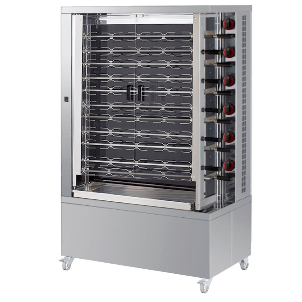 Asador de pollo de panadería comercial vitrocerámica 11 lanzas = 55/66 pollos 1100x610x1760mm 25200 W 400/3V modelo 53554066 EURAST