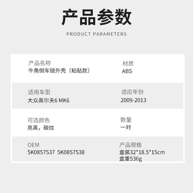 Cubiertas para Retrovisores de Volkswagen Golf 6 Mk6, Juego Completo de ABS, Forma de Cuerno de Toro, 2009-2013
