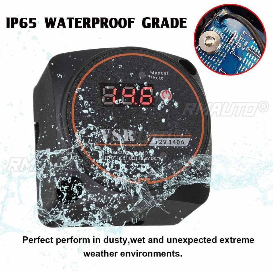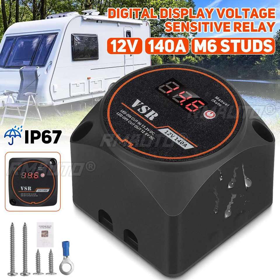 Relé de Carga Dividida Sensible al Voltaje con Pantalla Digital VSR 12V 140A para Autocaravanas, Coches, RV, Yates, Barcos, Aislador Inteligente de Batería