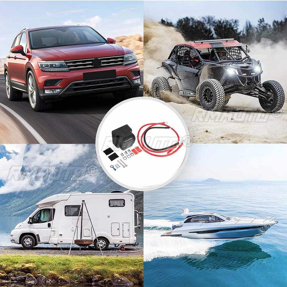 Relé de Carga Sensible a Voltaje (VSR) 12V 140A para Autocaravanas, Coches, RVs, Yates, Barcos, Aislador Inteligente de Baterías para 2 Bancos de Baterías