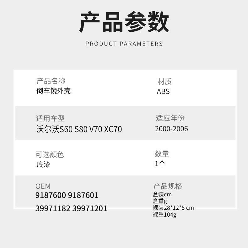 Carcasa de espejo retrovisor Volvo, cubierta ABS para S60 S80 V70 XC70 2000-2006, pieza de repuesto izquierda y derecha