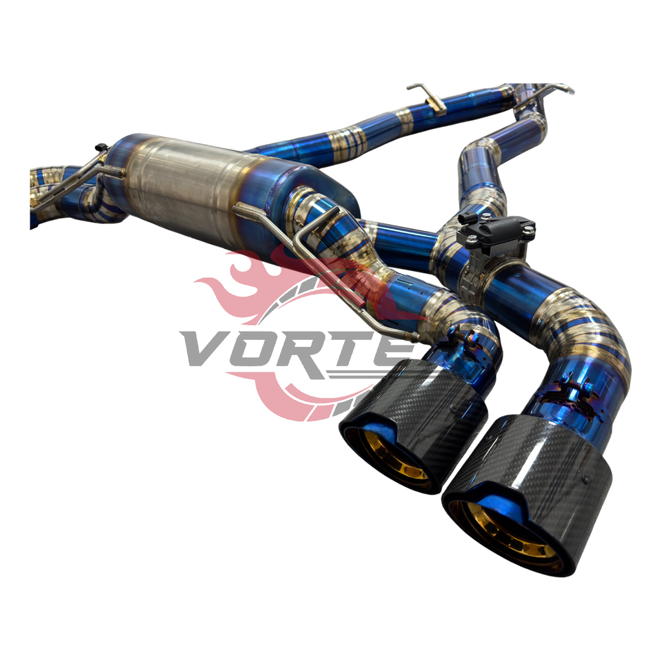 Sistema de Escape Ligero de Alto Rendimiento Vortex Blue Burnt Titanium Alloy para BMW M8, Ajuste Universal, 1.2 mm, 24 Meses
