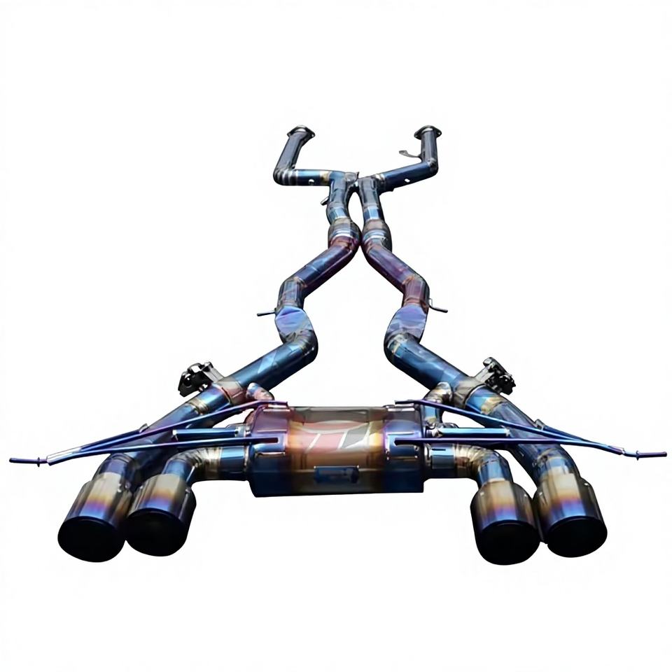 Sistema de Escape Catback Vortex Blue Titanium para BMW G80 G82 M3 M4 S58 con Sistema Valvetronic y Puntas Cuádruples Azules Quemadas de Alto Rendimiento