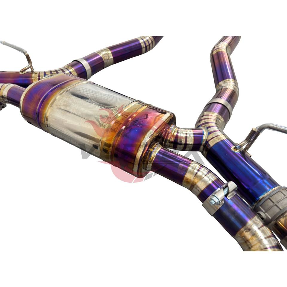 Sistema de Escape Catback Vortex Exotic Purple Titanium para BMW M5 G90 2025 con Sistema Valvetronic y Kit de Puntas Cuádruples de Fibra de Carbono